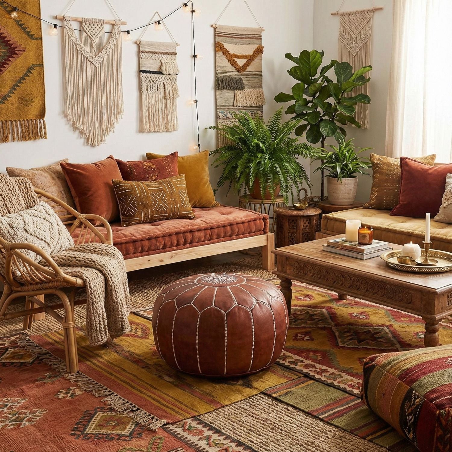 Lederpoufs haben in Marokko eine lange Geschichte, insbesondere in Fès, wo erfahrene Kunsthandwerker sie seit Jahrhunderten herstellen. Beim Färben kommen natürliche Farbstoffe wie Safran und Indigo zum Einsatz, die dem Leder seine leuchtenden Farbtöne verleihen. Anschließend wird das Leder von Hand zugeschnitten, genäht und bestickt – jedes Stück ein echtes Unikat.