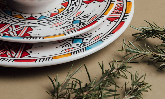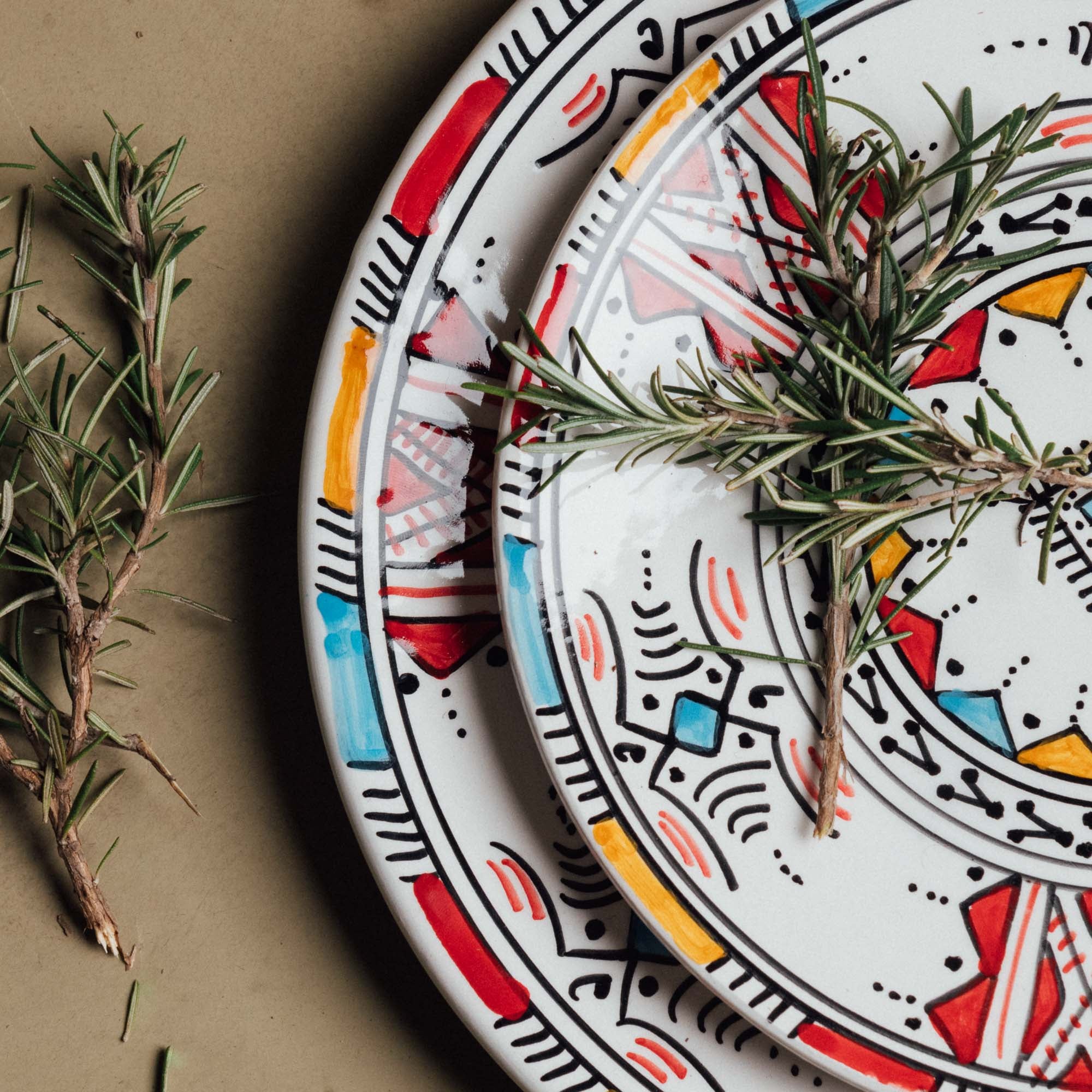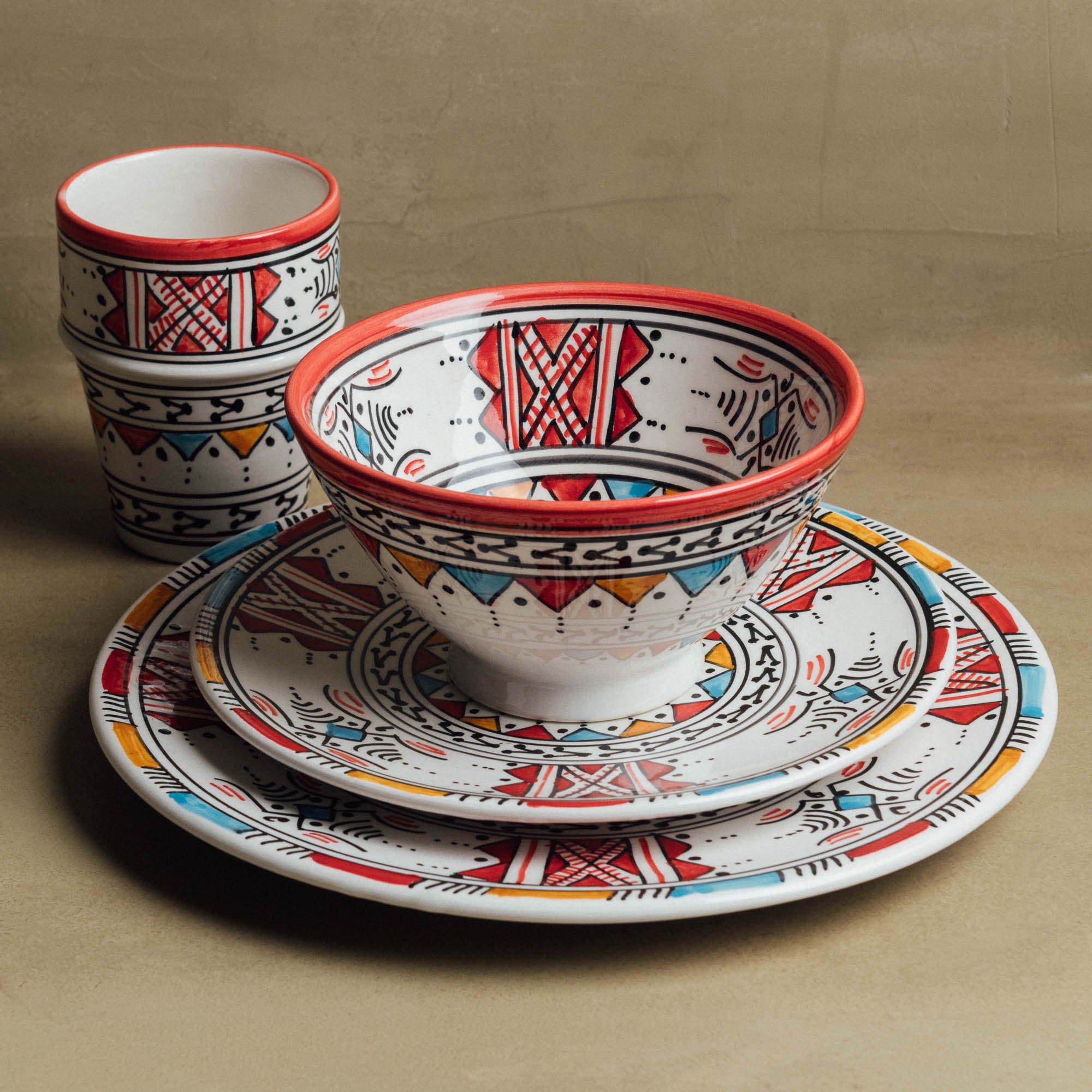 Feiern Sie den lebendigen Geist Marokkos mit dem Geschirrset „Berber Essence“. Mit seinen auffälligen, handgemalten Mustern in warmen und fröhlichen Farben spiegelt dieses Set die zeitlose Kunstfertigkeit der Berberkultur wider. Jedes Stück wird von erfahrenen marokkanischen Kunsthandwerkern sorgfältig von Hand gefertigt, wodurch jedes Set zu einem einzigartigen Meisterwerk wird.