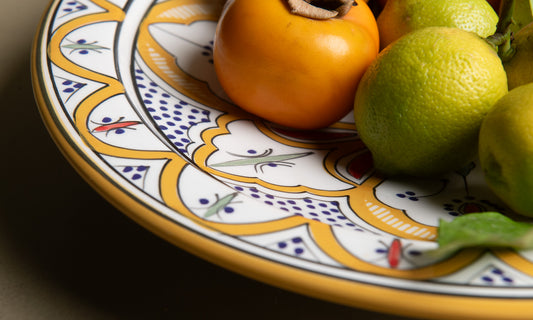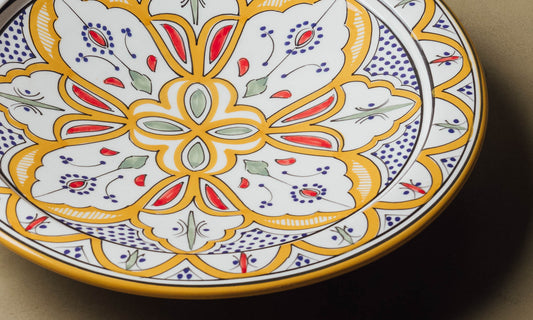 Die Geschichte der marokkanischen Handwerkskeramik reicht bis in die Antike zurück. Ihren Ursprung hat sie bei den Berberstämmen, die einfache, funktionale Gefäße aus lokalem Ton fertigten. Mit der Entwicklung Marokkos zu einem kulturellen Knotenpunkt hielten arabische und andalusische Einflüsse Einzug und brachten kunstvollere Designs hervor, darunter geometrische Muster und leuchtende Glasuren. Im 8. Jahrhundert wurde Fès zu einem Zentrum keramischer Innovation, wo die charakteristische kobaltblaue Glasur entstand, die bis heute als Sinnbild marokkanischer Keramikkunst gilt. Über die Jahrhunderte hinweg blühte das Handwerk in Städten wie Fès, Safi und Marrakesch auf, wobei jede Generation der Kunst ihre eigene Handschrift verlieh. Auch heute spiegelt marokkanische Keramik die reiche Kulturgeschichte des Landes wider und verbindet Tradition mit zeitloser Schönheit in jedem handgefertigten Stück.