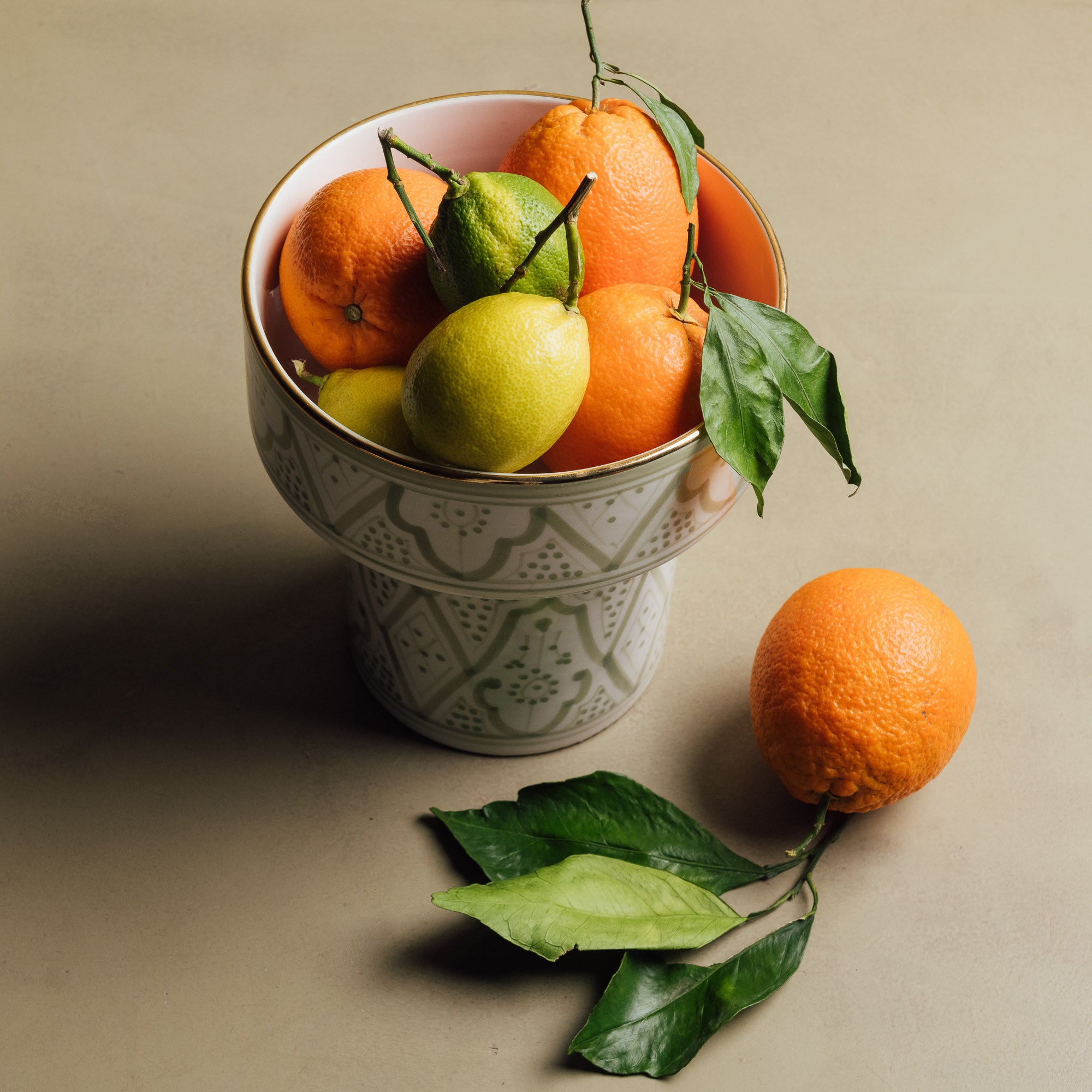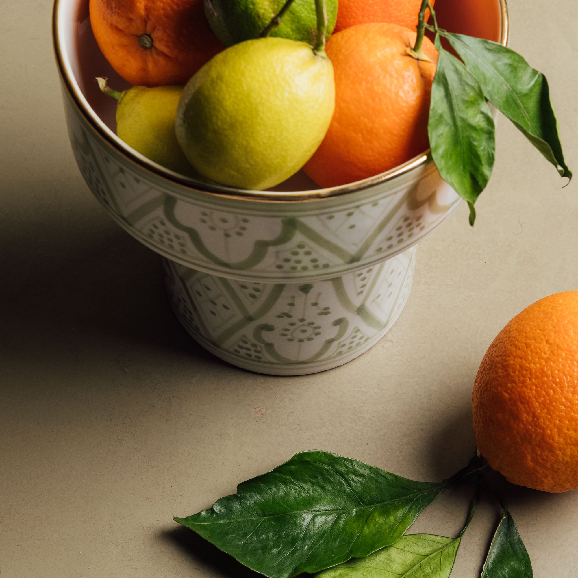 Jedes Stück wird in sorgfältiger Handarbeit in mehreren wichtigen Schritten hergestellt, darunter Formen, Bemalen der Muster, Glasieren und dreimaliges Brennen, wobei beim letzten Brennen der Glanz von echtem Gold zum Vorschein kommt. Dieser langwierige Prozess kann bis zu 10 Tage dauern. Diese Liebe zum Detail gewährleistet eine außergewöhnliche Qualität und unterstreicht gleichzeitig die traditionelle marokkanische Handwerkskunst.