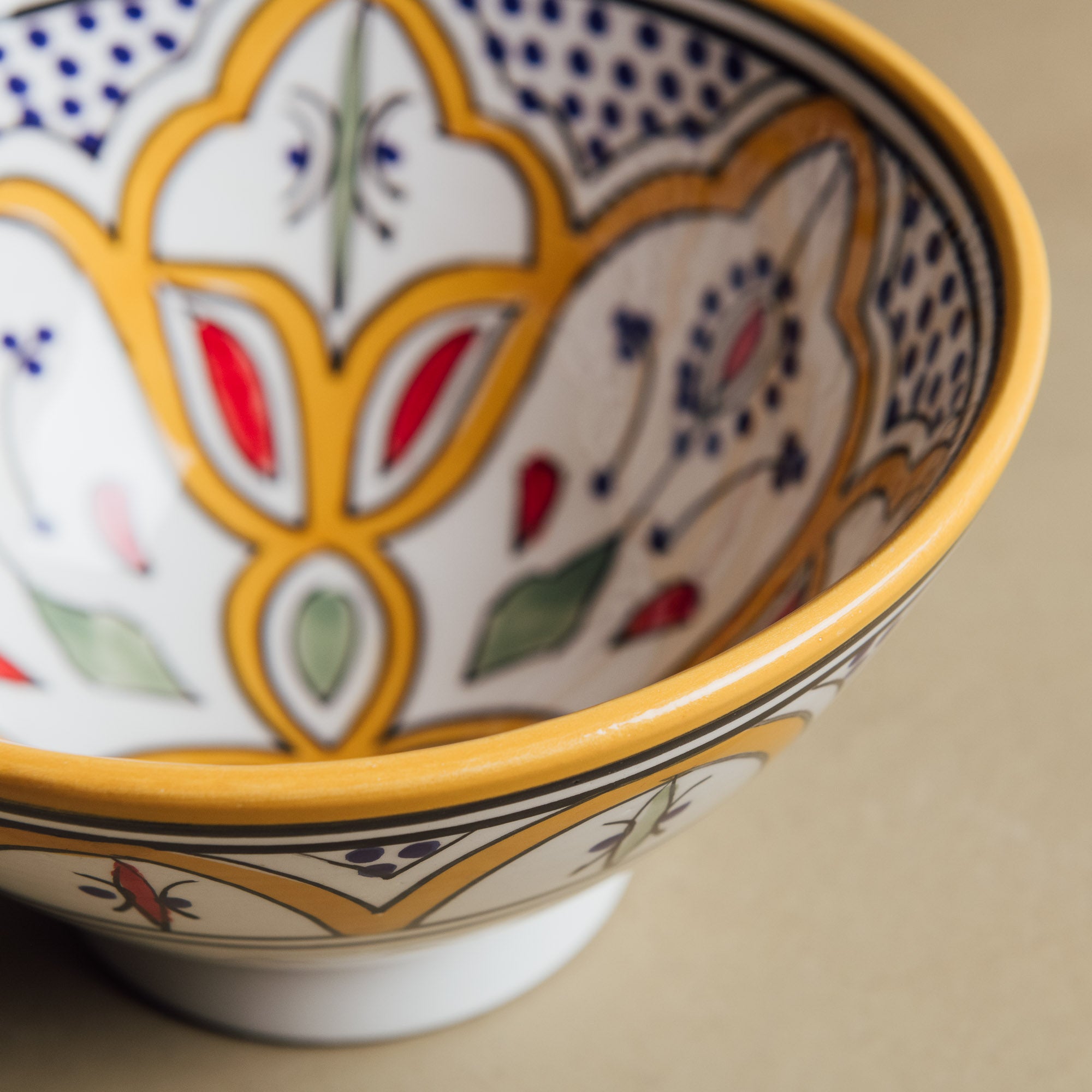 Verleihen Sie Ihrem Alltag mit der Fez Mustard Bowl einen Hauch marokkanischer Eleganz. Diese von erfahrenen marokkanischen Kunsthandwerkern handgefertigte Schale besticht durch ihr schlankes, zeitgemäßes Design und ihren raffinierten, zeitlosen Look. Sie eignet sich perfekt für Suppen, Salate oder andere Gerichte Ihrer Wahl und vereint authentische Handwerkskunst mit moderner Raffinesse.