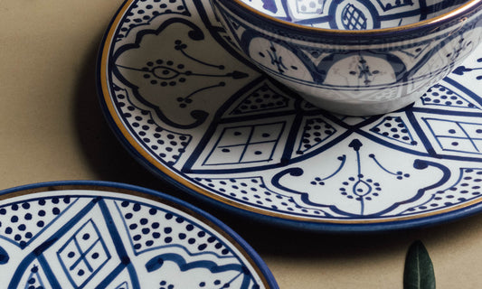 Das Fez Royal Azure Set verleiht Ihrem Esserlebnis einen königlichen Touch und verbindet traditionelles marokkanisches Design mit modernem Luxus. Ob für besondere Anlässe oder den eleganten Alltag – dieses Set wertet jede Mahlzeit mit Stil und Raffinesse auf.