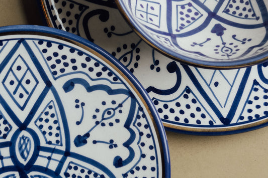 Marokkanische Keramik ist bekannt für ihre leuchtenden Farben und detailreichen Muster und vereint arabische, berberische und andalusische Einflüsse. Die dekorativen und zugleich funktionalen Stücke werden von erfahrenen Kunsthandwerkern von Hand gefertigt und zeichnen sich durch traditionelle Designs sowie besondere Glasurtechniken aus.