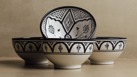 Marokkanische Keramik ist bekannt für ihre leuchtenden Farben und detailreichen Muster und vereint arabische, berberische und andalusische Einflüsse. Die dekorativen und zugleich funktionalen Stücke werden von erfahrenen Kunsthandwerkern von Hand gefertigt und zeichnen sich durch traditionelle Designs sowie besondere Glasurtechniken aus.