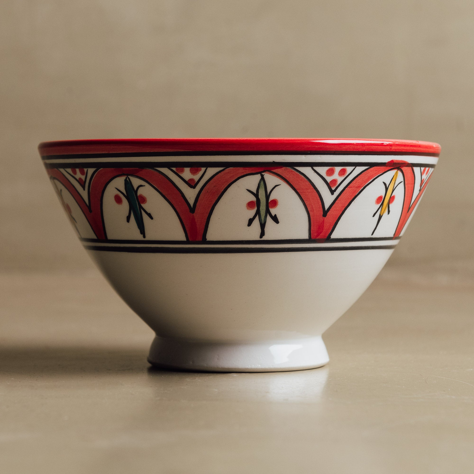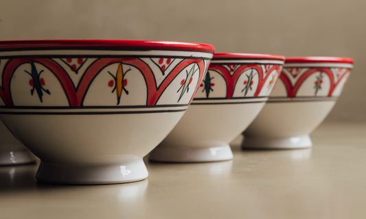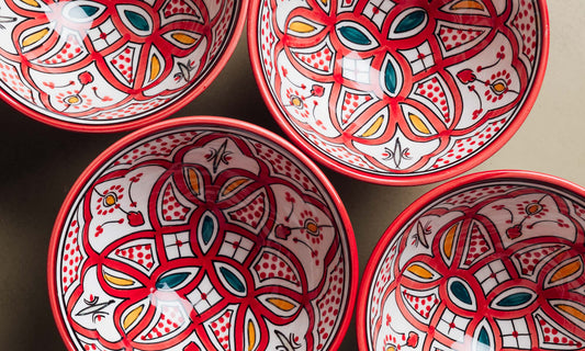 Verleihen Sie Ihrem Alltag mit der roten Fez-Schüssel einen Hauch marokkanischer Eleganz. Diese Schüssel wurde von erfahrenen marokkanischen Kunsthandwerkern handgefertigt und besticht durch ihr elegantes, zeitgemäßes Design, das ihr einen raffinierten, zeitlosen Look verleiht. Sie eignet sich perfekt für Suppen, Salate oder andere Gerichte Ihrer Wahl und vereint authentische Handwerkskunst mit moderner Raffinesse.