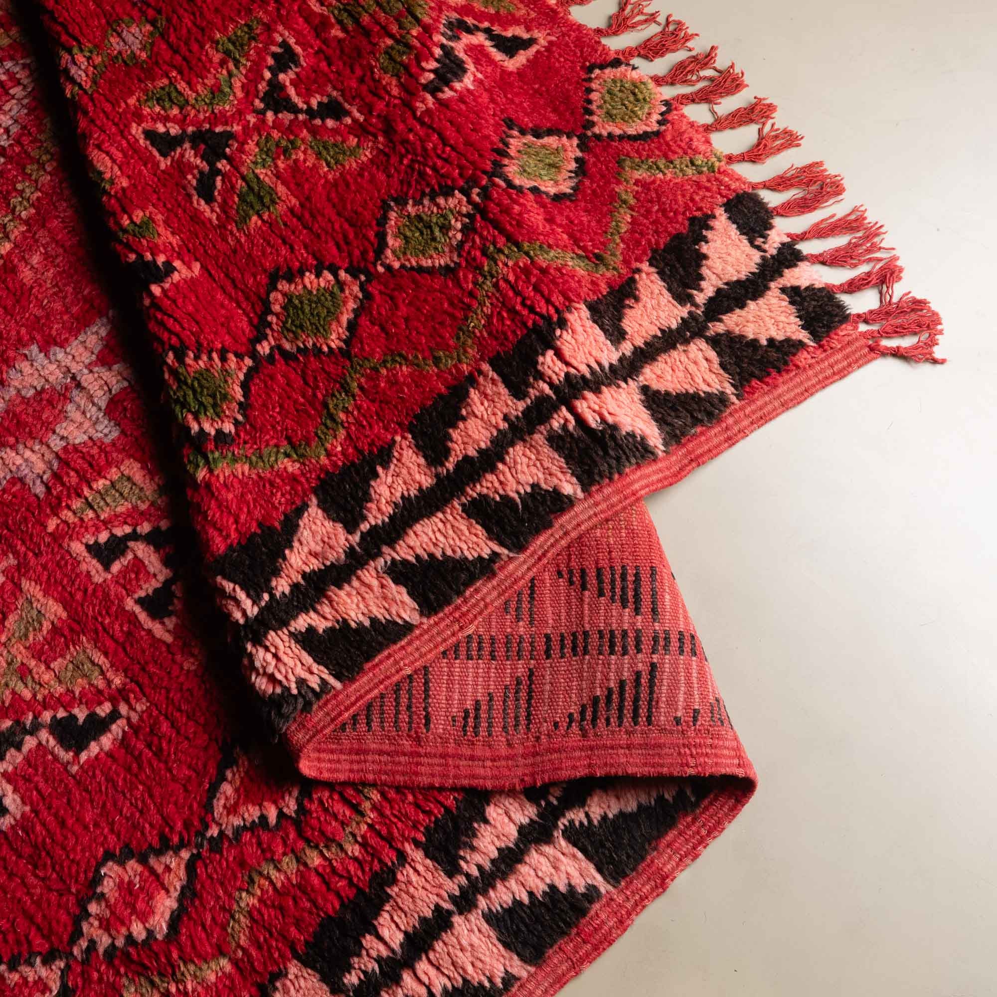 Boujad-Teppiche entstehen aus einem jahrhundertealten Wissen, das von den Frauen des Boujad-Stammes über Generationen weitergegeben wurde. Ihre farbenfrohen Muster sind von der Natur und den traditionellen Vorstellungen der Weberinnen inspiriert.