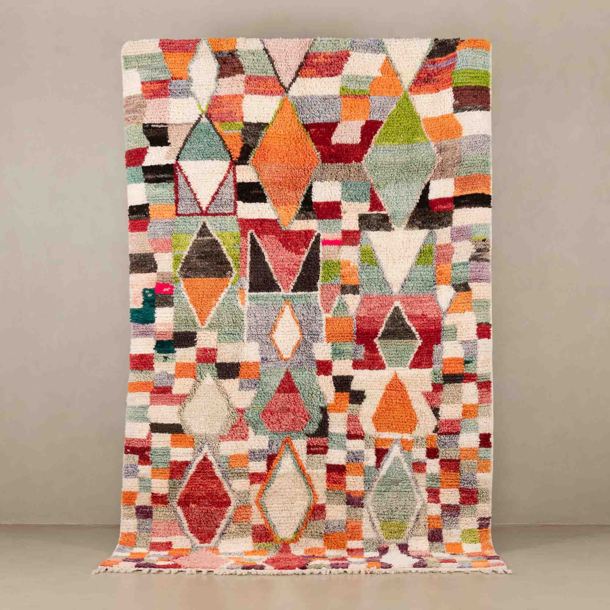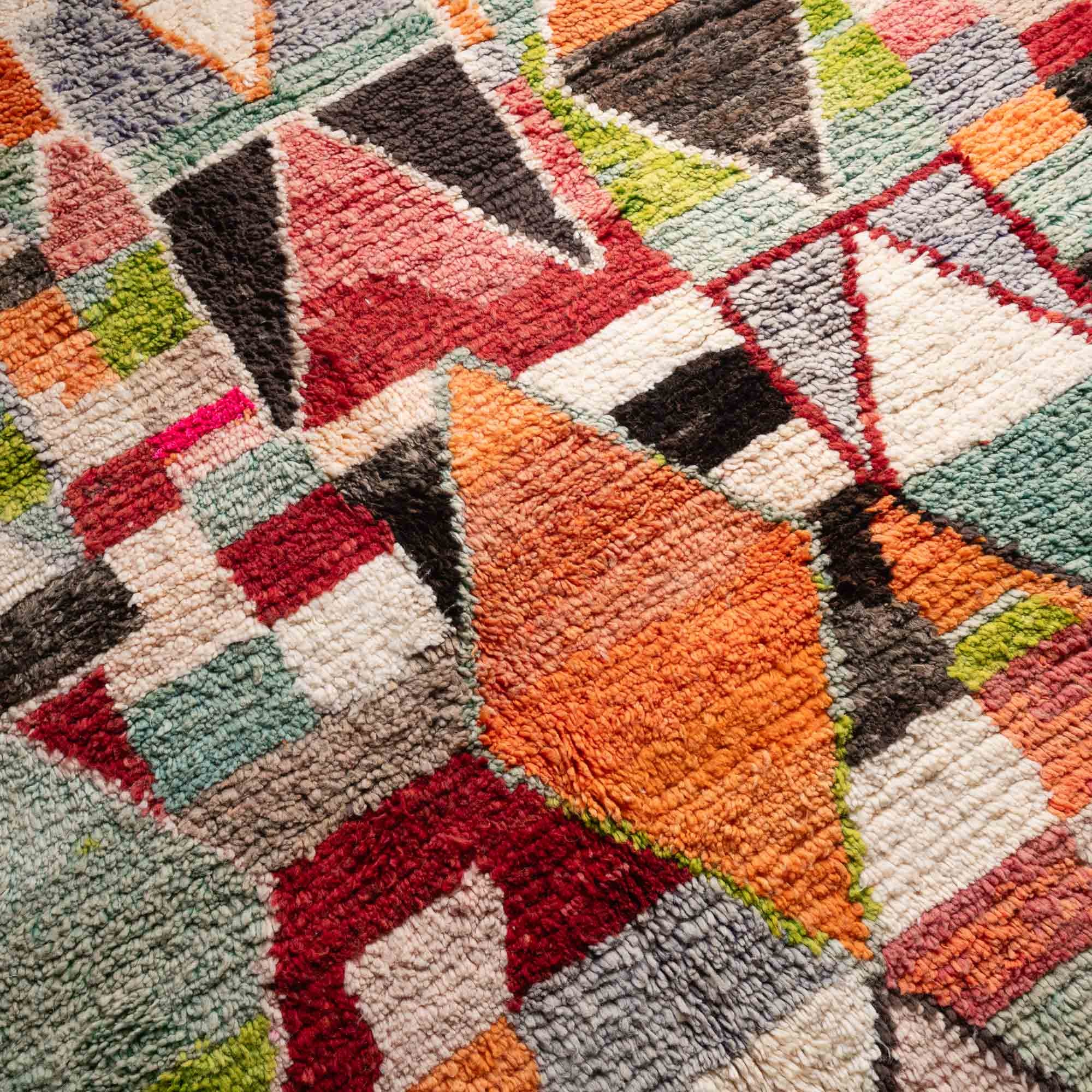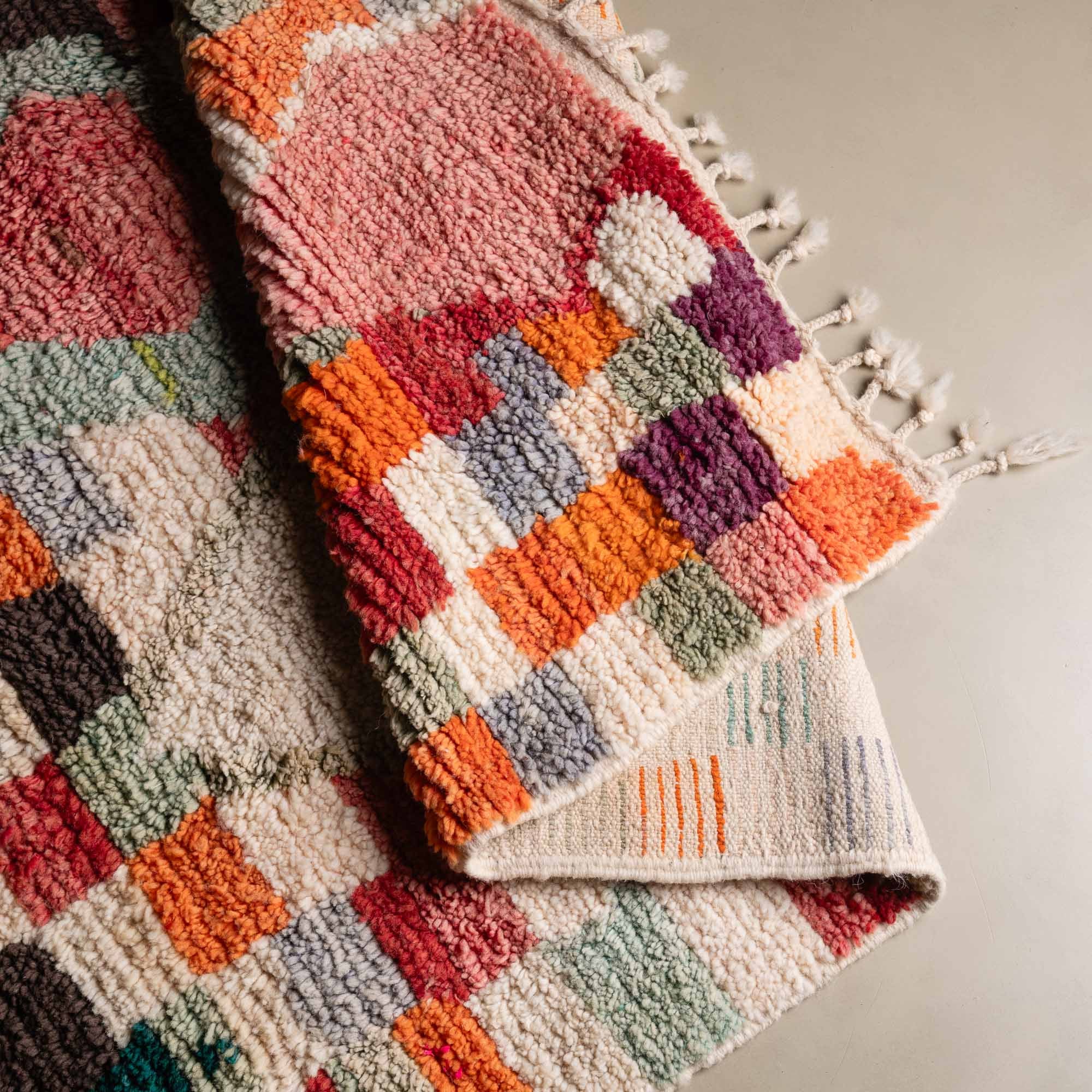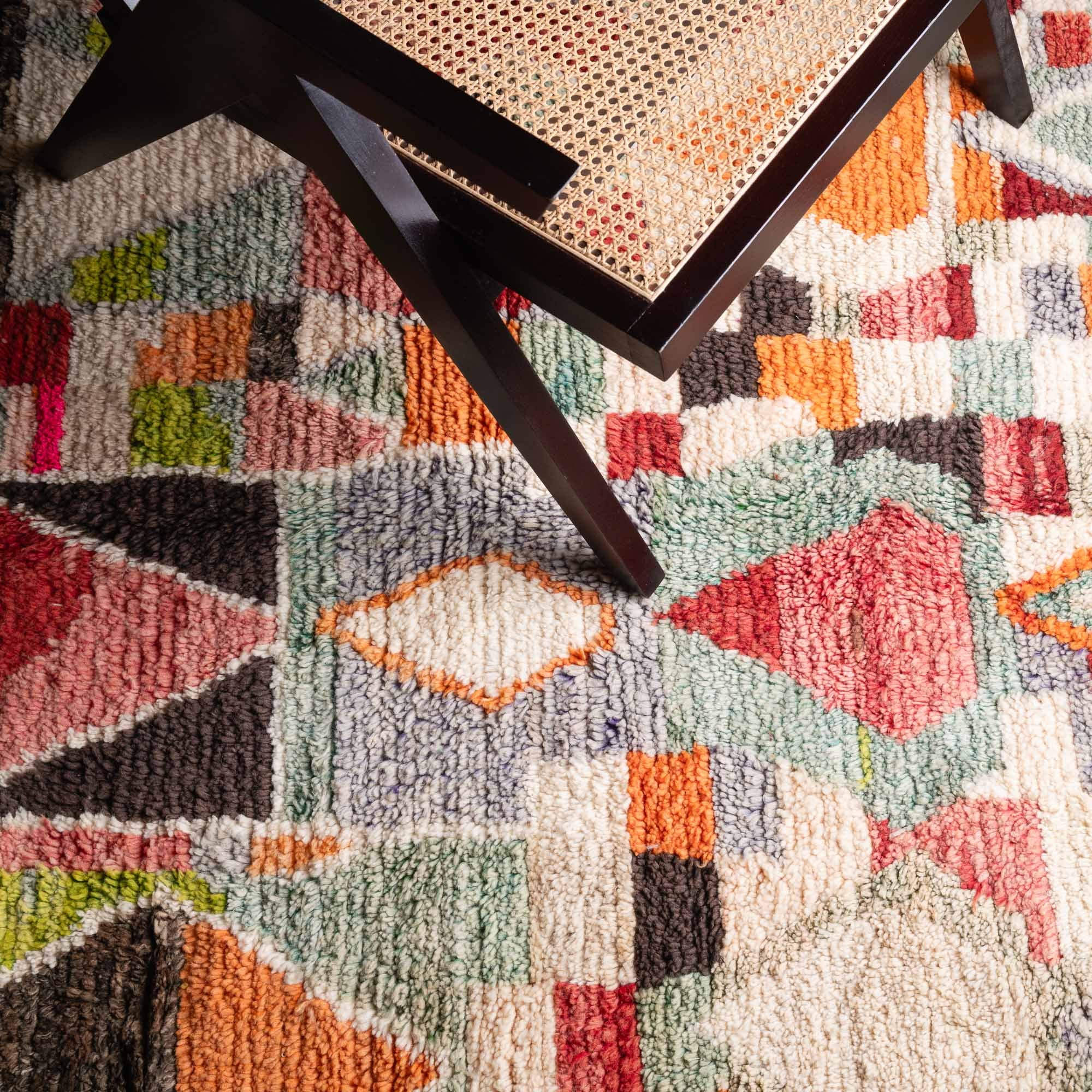 Boujad-Teppiche entstehen aus einem jahrhundertealten Wissen, das von den Frauen des Boujad-Stammes über Generationen weitergegeben wurde. Ihre farbenfrohen Muster sind von der Natur und den traditionellen Vorstellungen der Weberinnen inspiriert.