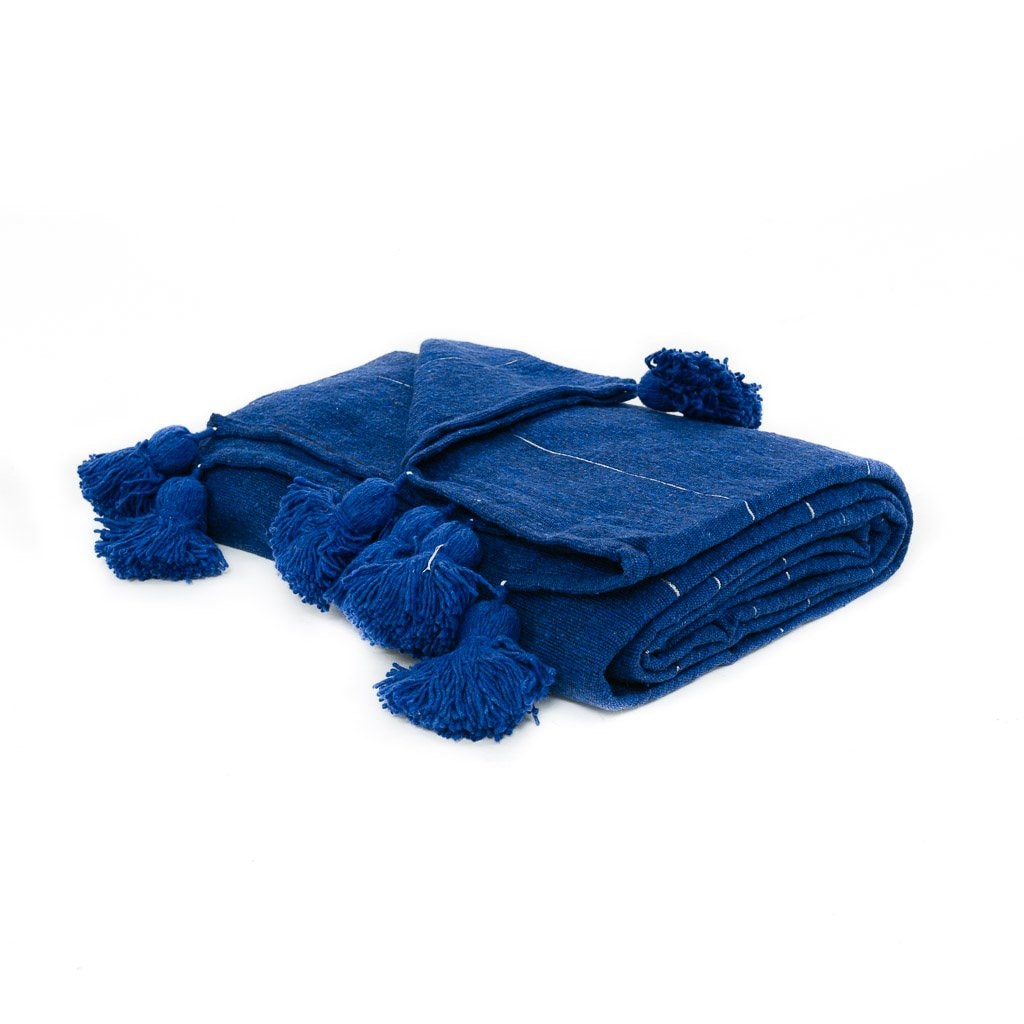 Marokkanische Pompon-Decke, vollständig von Hand gewebt und handgefärbt – ideal, um Ihrem Zuhause, Ihrem Bett oder Ihrer Couch Wärme und Geborgenheit zu verleihen. Diese Decke verzaubert Schlafzimmer und Kinderzimmer mit ihrer besonders weichen, warmen Textur.
