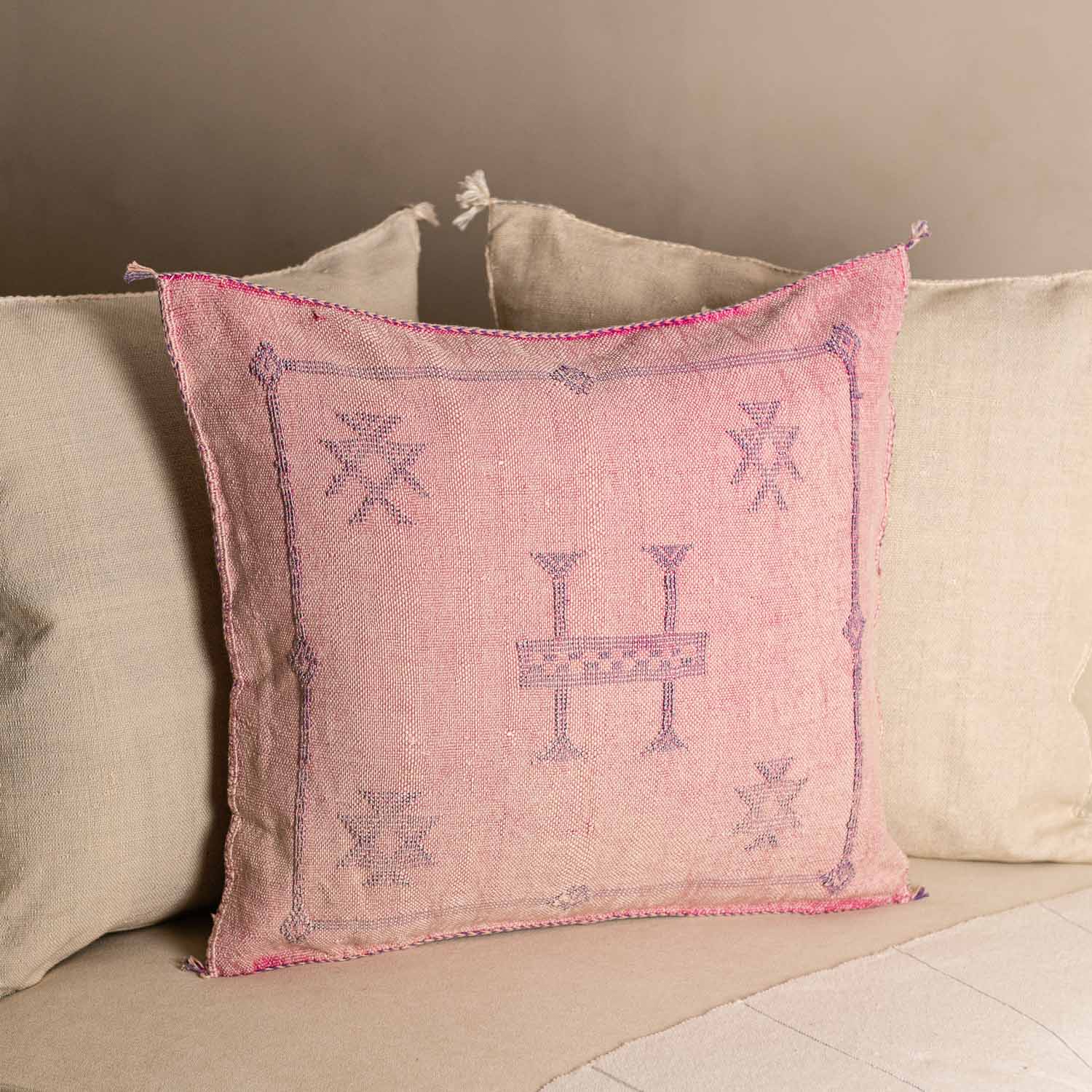 22x22 in / 55x55 cm Authentischer Kissenbezug aus rosa Kaktusseide