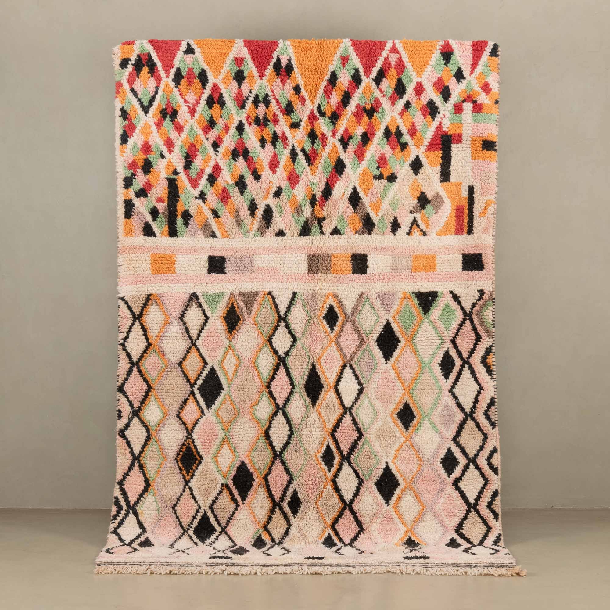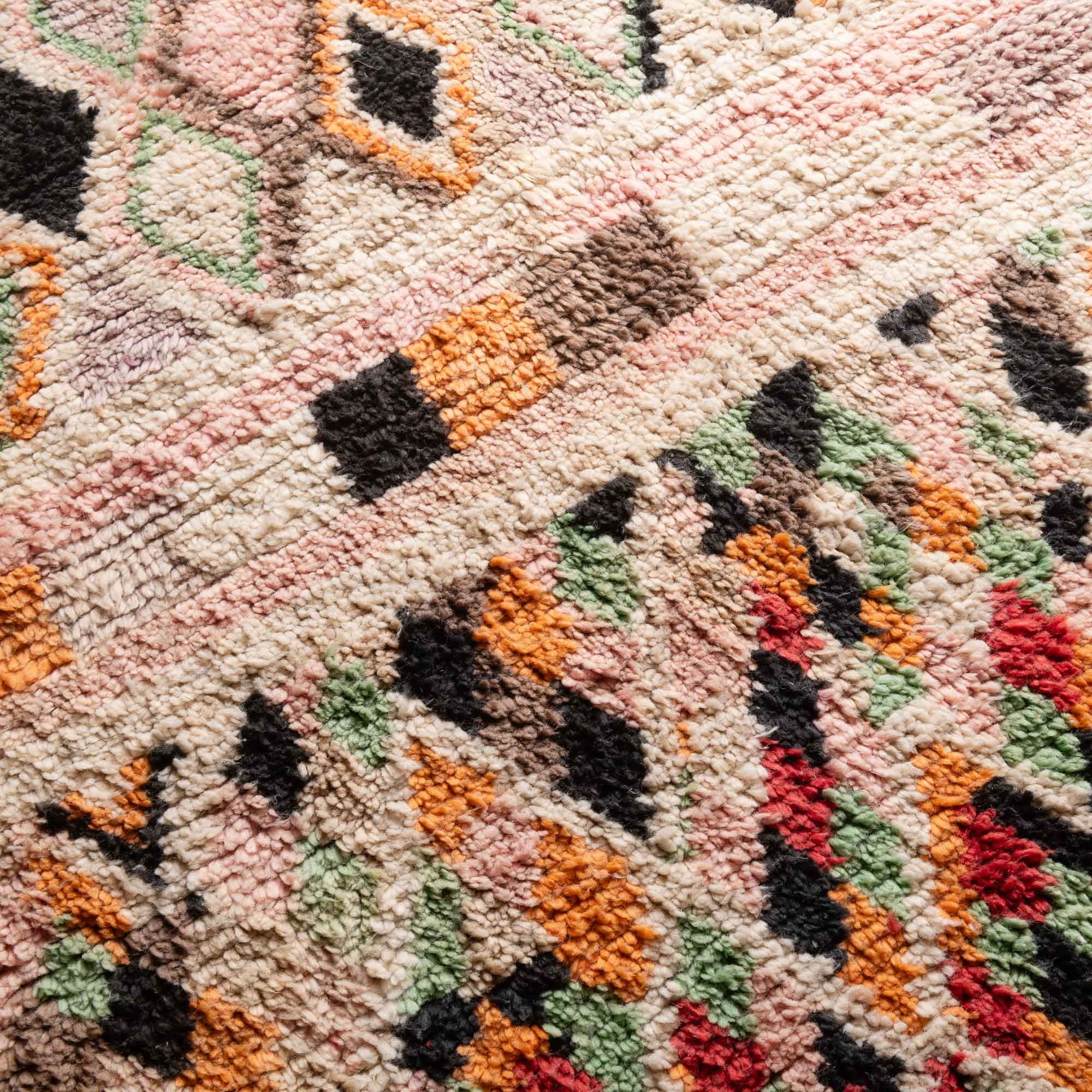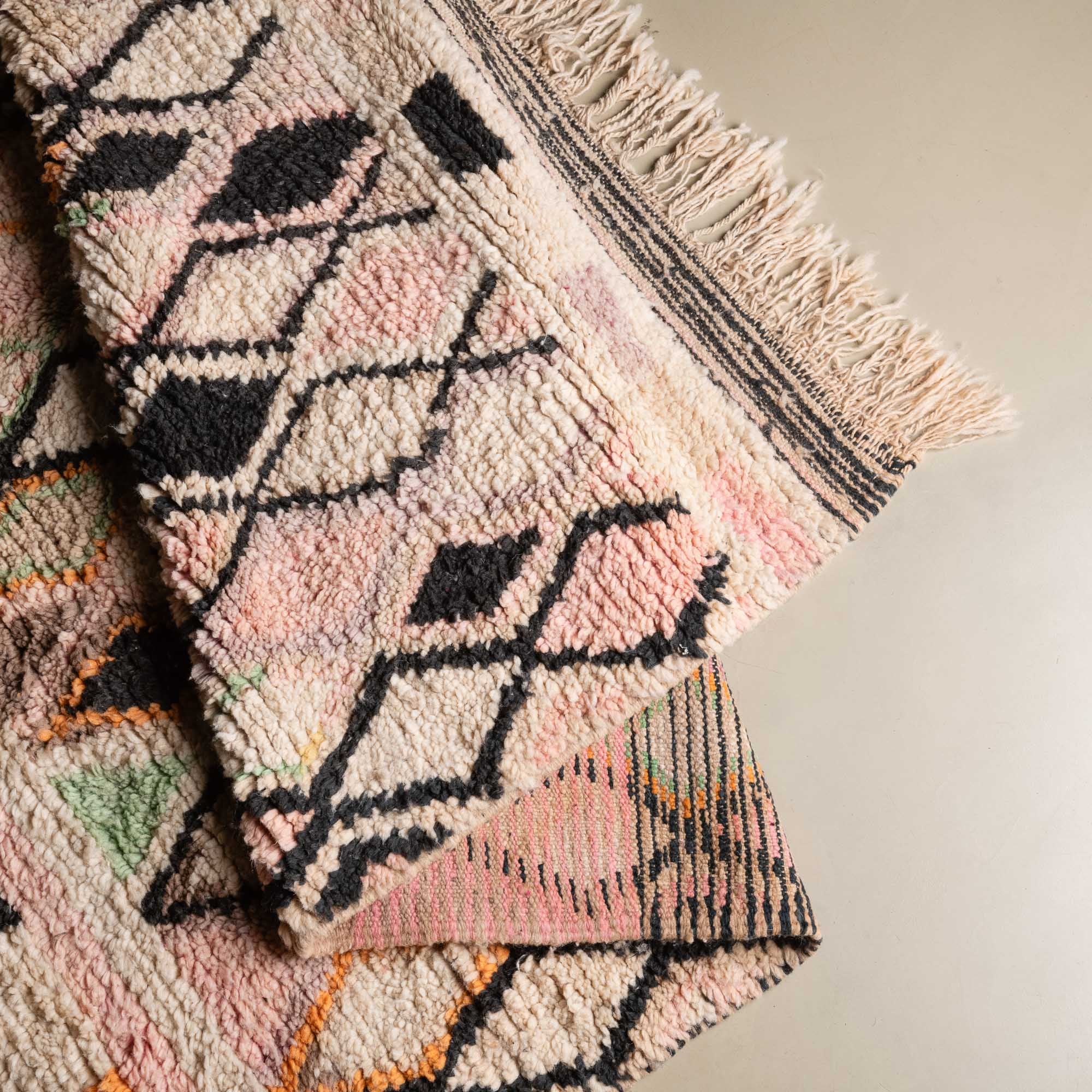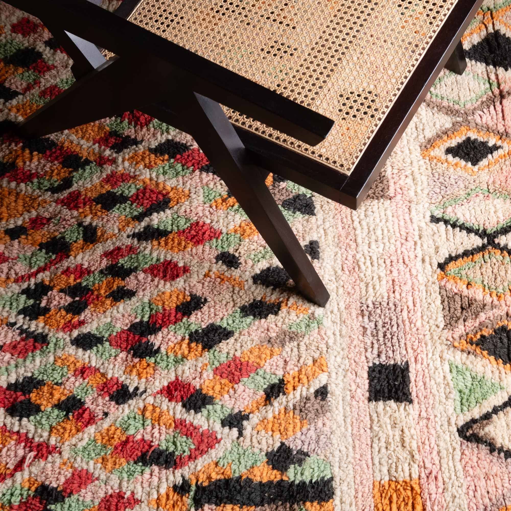 Boujad-Teppiche entstehen aus einem jahrhundertealten Wissen, das von den Frauen des Boujad-Stammes über Generationen weitergegeben wurde. Ihre farbenfrohen Muster sind von der Natur und den traditionellen Vorstellungen der Weberinnen inspiriert.