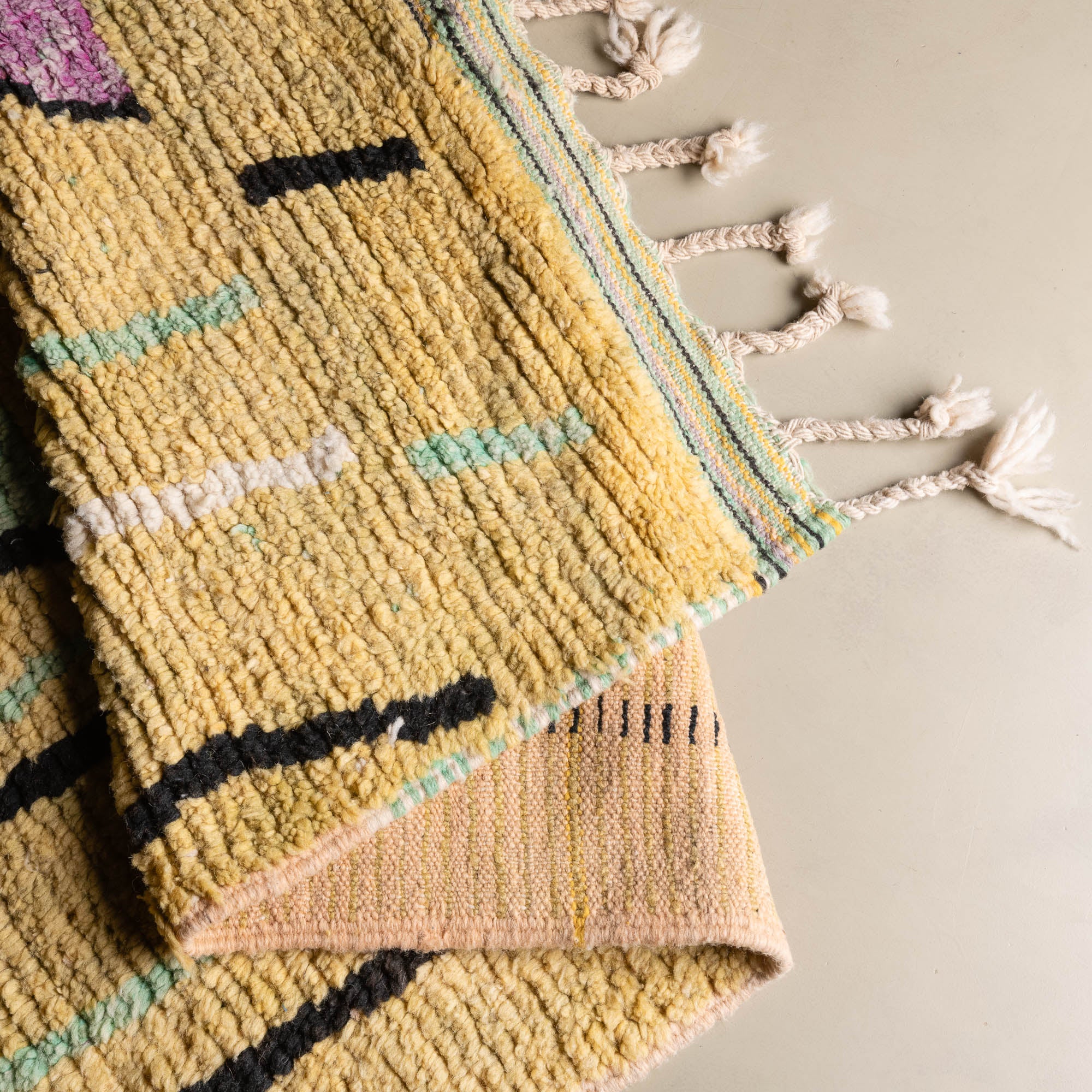 Jeder Benisouk Vintage Teppich ist ein echtes Stück von Marokkanische GeschichteDie Teppiche werden direkt aus Haushalten bezogen und sorgfältig auf ihre Echtheit geprüft. Jeder Teppich trägt seine eigene Geschichte in sich, die vor Jahrzehnten von erfahrenen Kunsthandwerkern gewebt wurde.Die Herausforderung: