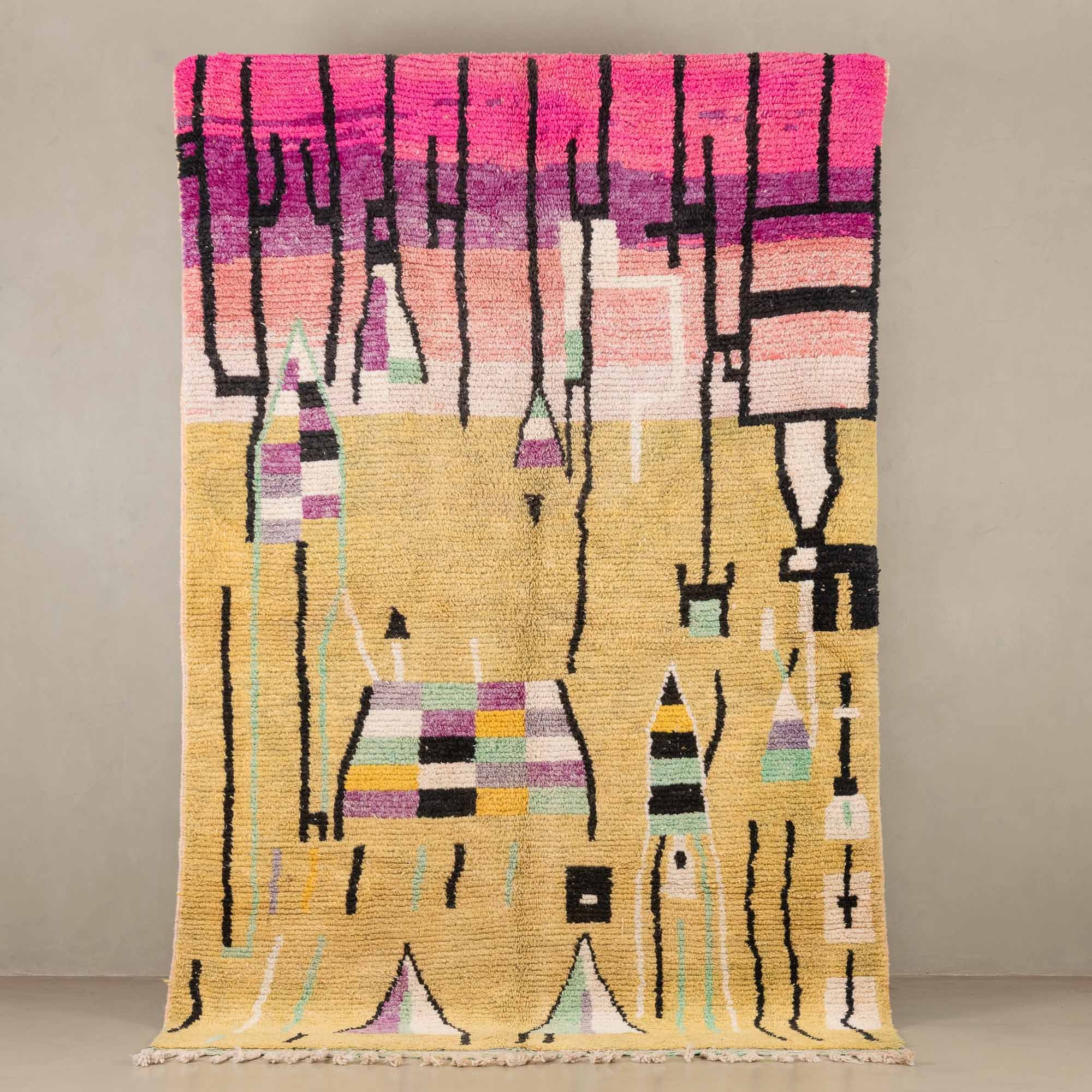 Boujad-Teppiche entstehen aus einem jahrhundertealten Wissen, das von den Frauen des Boujad-Stammes über Generationen weitergegeben wurde. Ihre farbenfrohen Muster sind von der Natur und den traditionellen Vorstellungen der Weberinnen inspiriert.