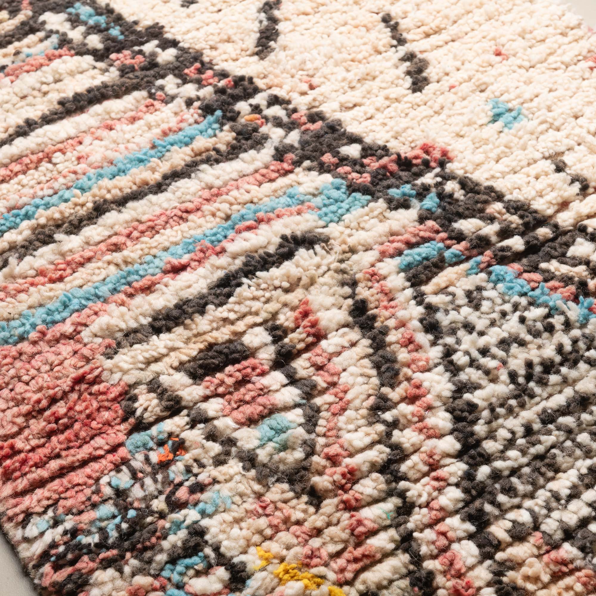 Boujad-Teppiche entstehen aus einem jahrhundertealten Wissen, das von den Frauen des Boujad-Stammes über Generationen weitergegeben wurde. Ihre farbenfrohen Muster sind von der Natur und den traditionellen Vorstellungen der Weberinnen inspiriert.