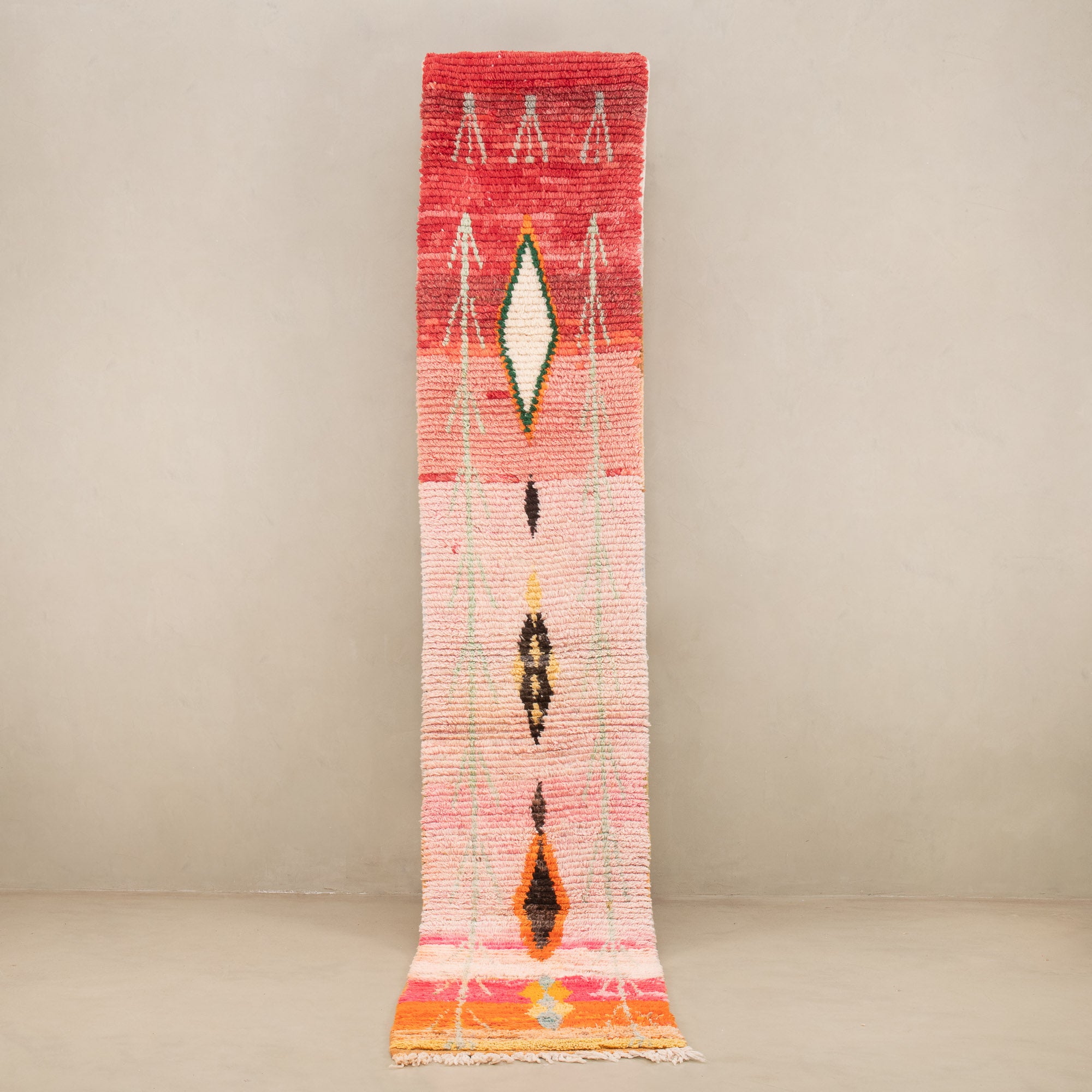 Boujad-Teppiche entstehen aus einem jahrhundertealten Wissen, das von den Frauen des Boujad-Stammes über Generationen weitergegeben wurde. Ihre farbenfrohen Muster sind von der Natur und den traditionellen Vorstellungen der Weberinnen inspiriert.