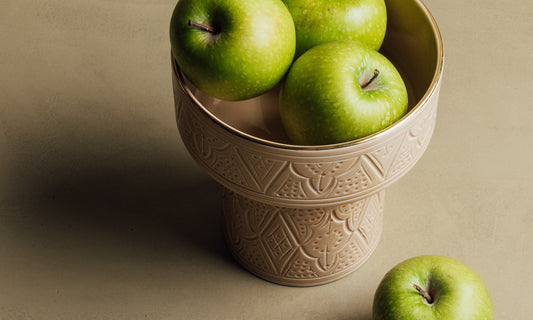 Jedes Stück wird in sorgfältiger Handarbeit in mehreren wichtigen Schritten hergestellt, darunter Formen, Bemalen der Muster, Glasieren und dreimaliges Brennen, wobei beim letzten Brennen der Glanz von echtem Gold zum Vorschein kommt. Dieser langwierige Prozess kann bis zu 10 Tage dauern. Diese Liebe zum Detail gewährleistet eine außergewöhnliche Qualität und unterstreicht gleichzeitig die traditionelle marokkanische Handwerkskunst.