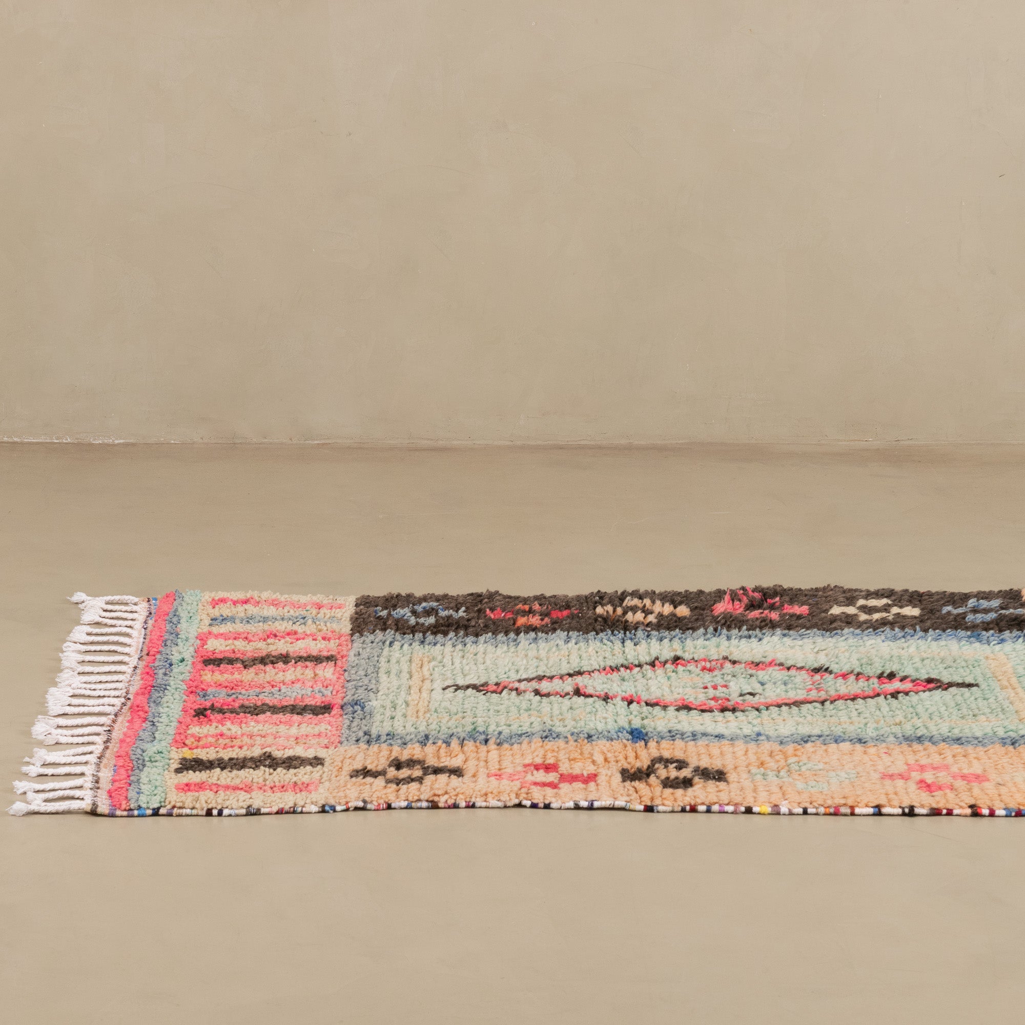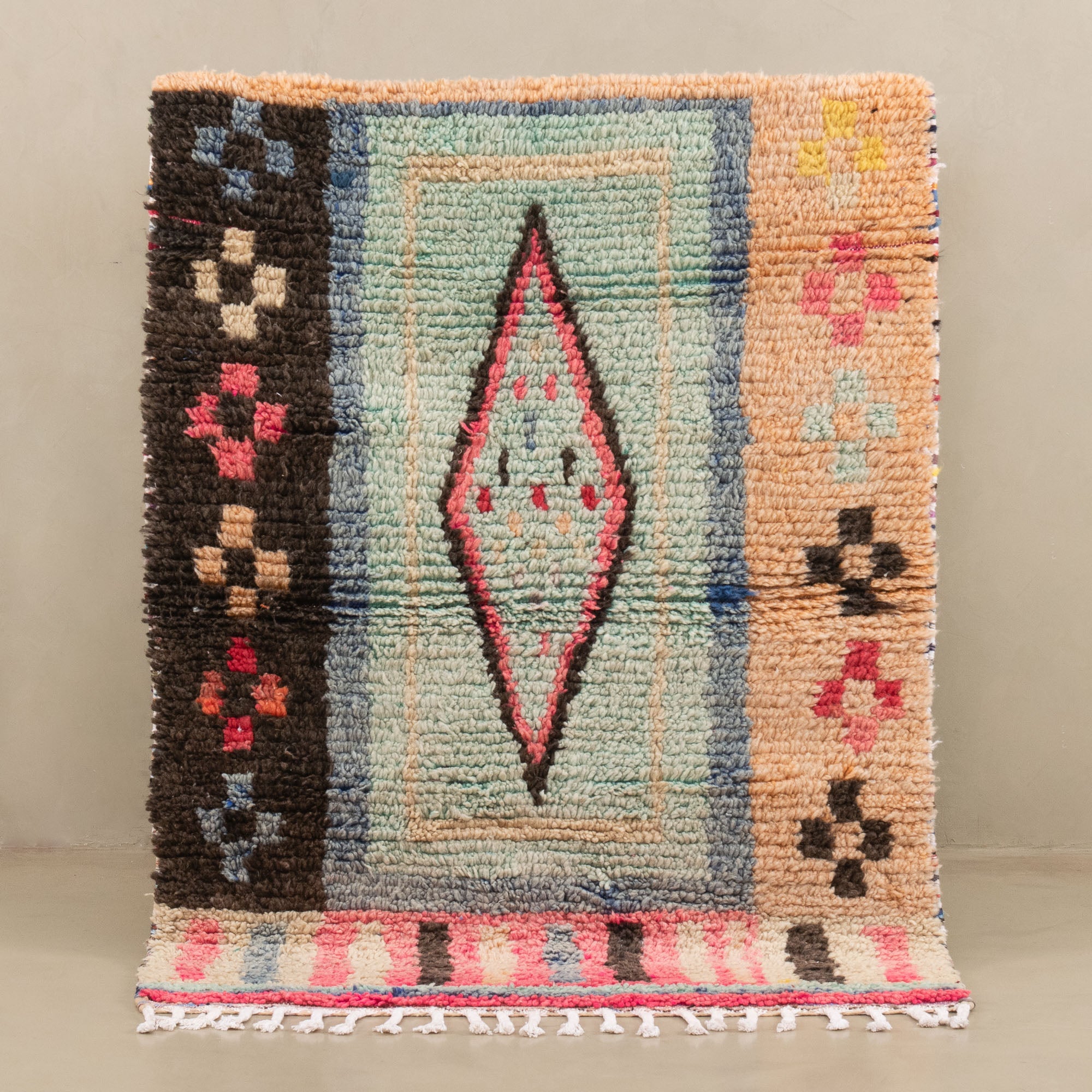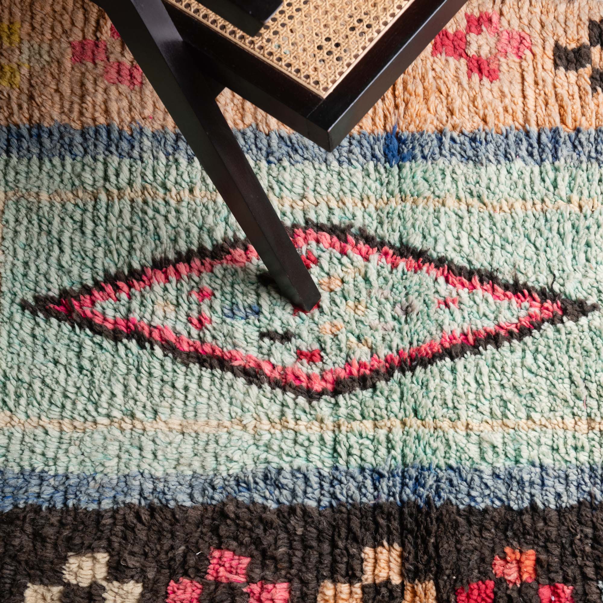 Boujad-Teppiche entstehen aus einem jahrhundertealten Wissen, das von den Frauen des Boujad-Stammes über Generationen weitergegeben wurde. Ihre farbenfrohen Muster sind von der Natur und den traditionellen Vorstellungen der Weberinnen inspiriert.