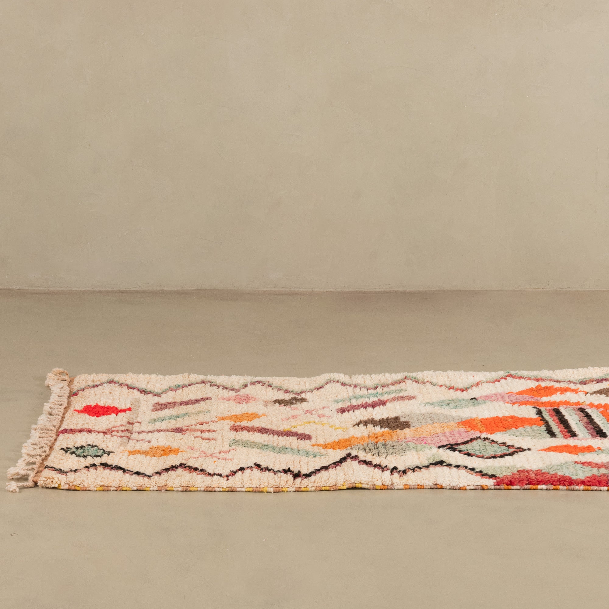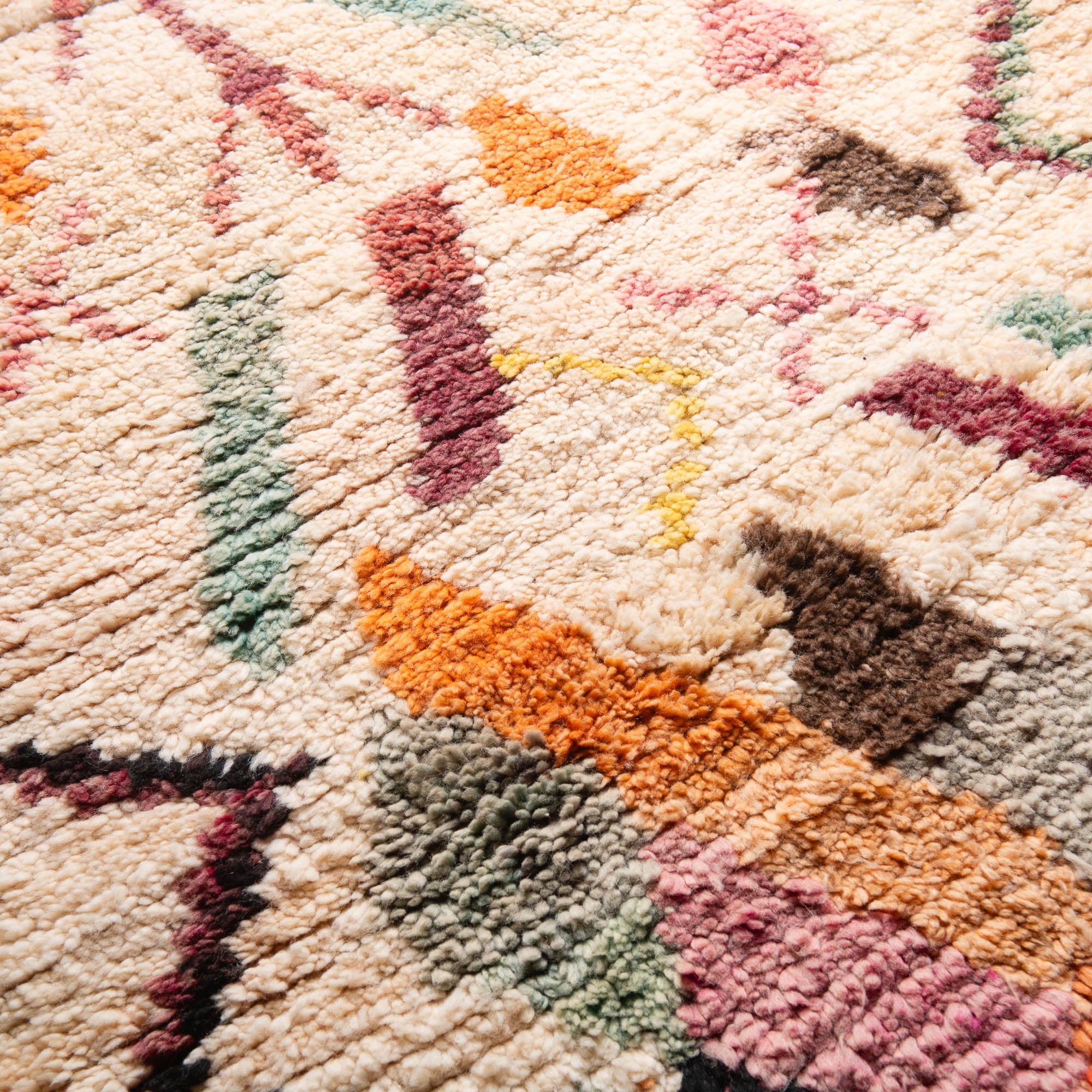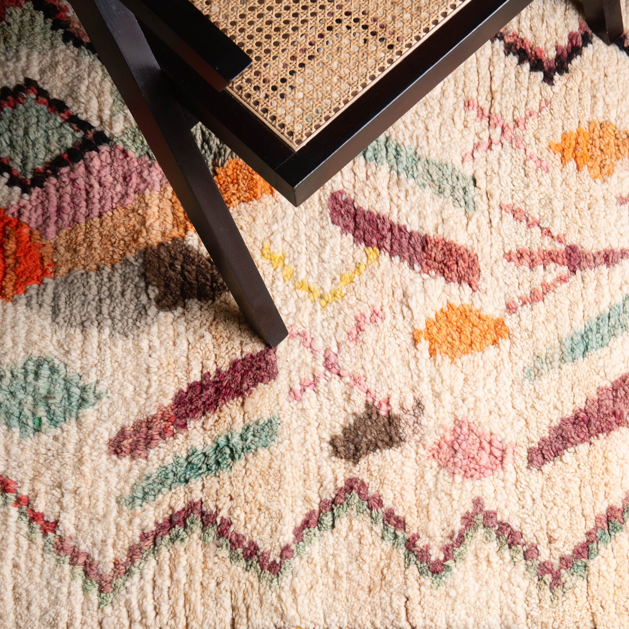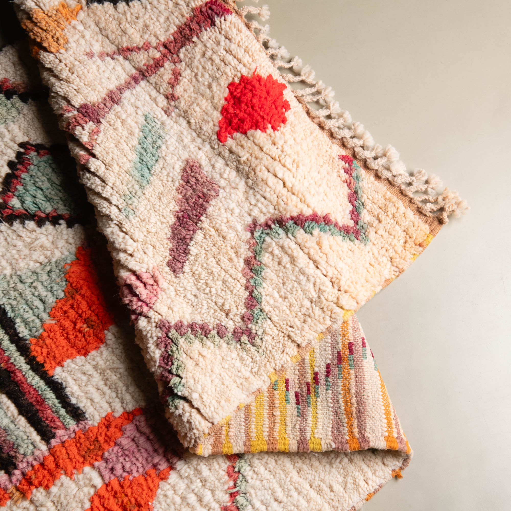 Boujad-Teppiche entstehen aus einem jahrhundertealten Wissen, das von den Frauen des Boujad-Stammes über Generationen weitergegeben wurde. Ihre farbenfrohen Muster sind von der Natur und den traditionellen Vorstellungen der Weberinnen inspiriert.
