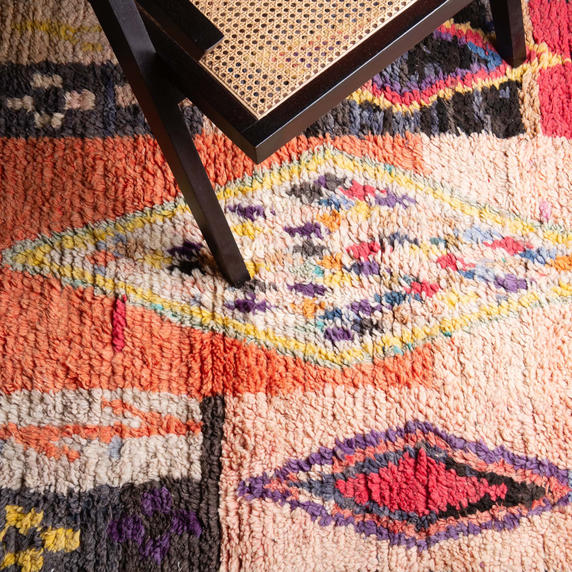 Boujad-Teppiche entstehen aus einem jahrhundertealten Wissen, das von den Frauen des Boujad-Stammes über Generationen weitergegeben wurde. Ihre farbenfrohen Muster sind von der Natur und den traditionellen Vorstellungen der Weberinnen inspiriert.