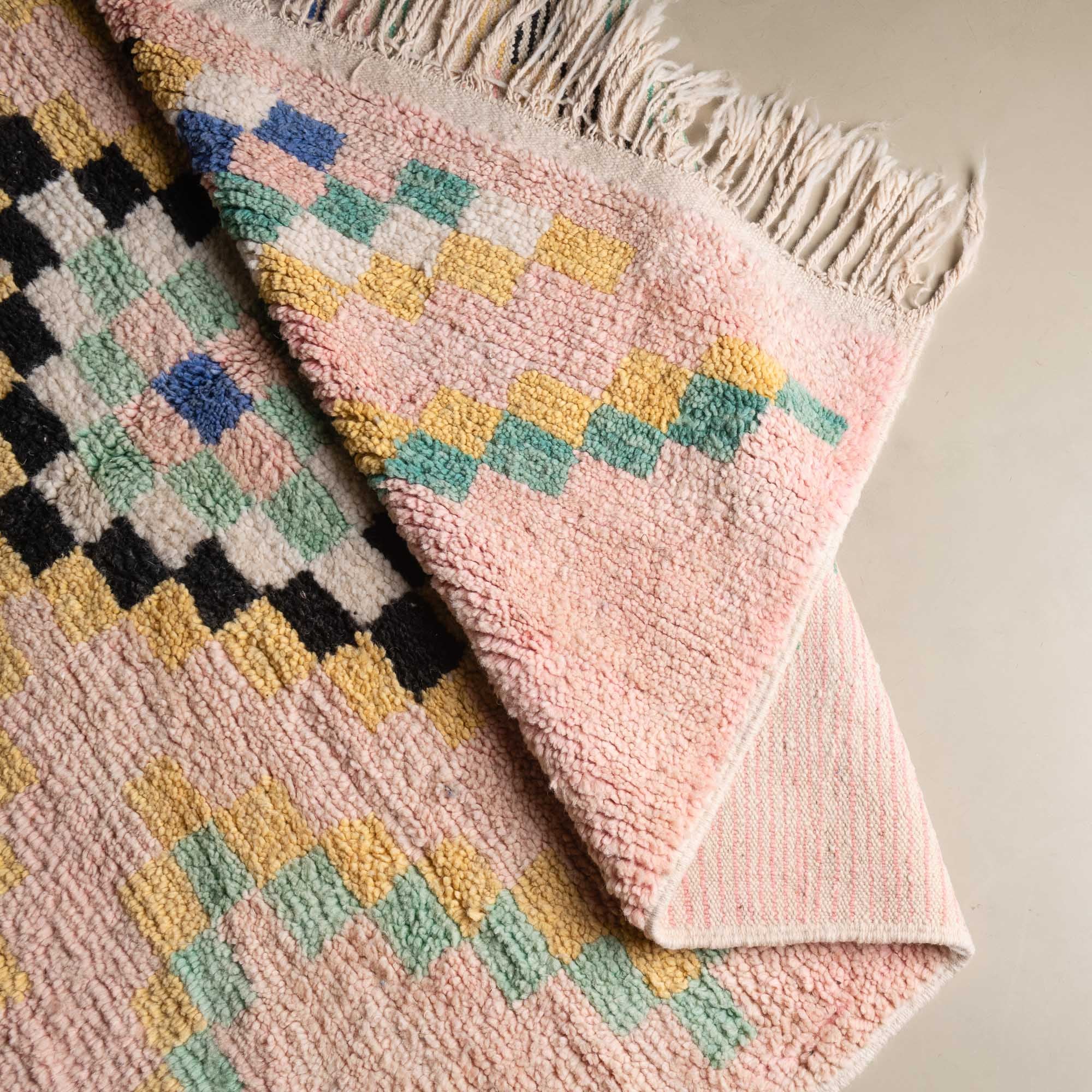 Boujad-Teppiche entstehen aus einem jahrhundertealten Wissen, das von den Frauen des Boujad-Stammes über Generationen weitergegeben wurde. Ihre farbenfrohen Muster sind von der Natur und den traditionellen Vorstellungen der Weberinnen inspiriert.