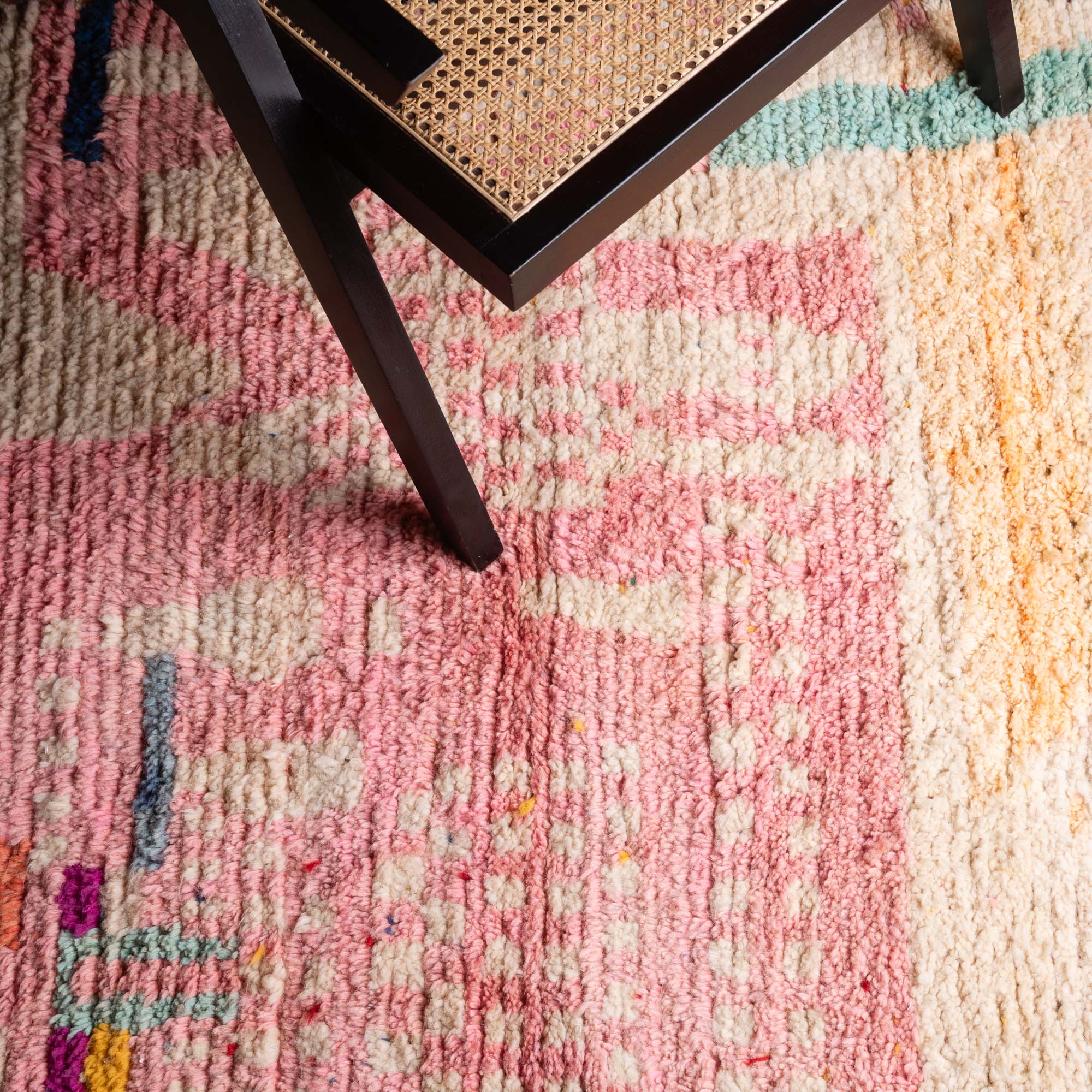 Boujad-Teppiche entstehen aus einem jahrhundertealten Wissen, das von den Frauen des Boujad-Stammes über Generationen weitergegeben wurde. Ihre farbenfrohen Muster sind von der Natur und den traditionellen Vorstellungen der Weberinnen inspiriert.