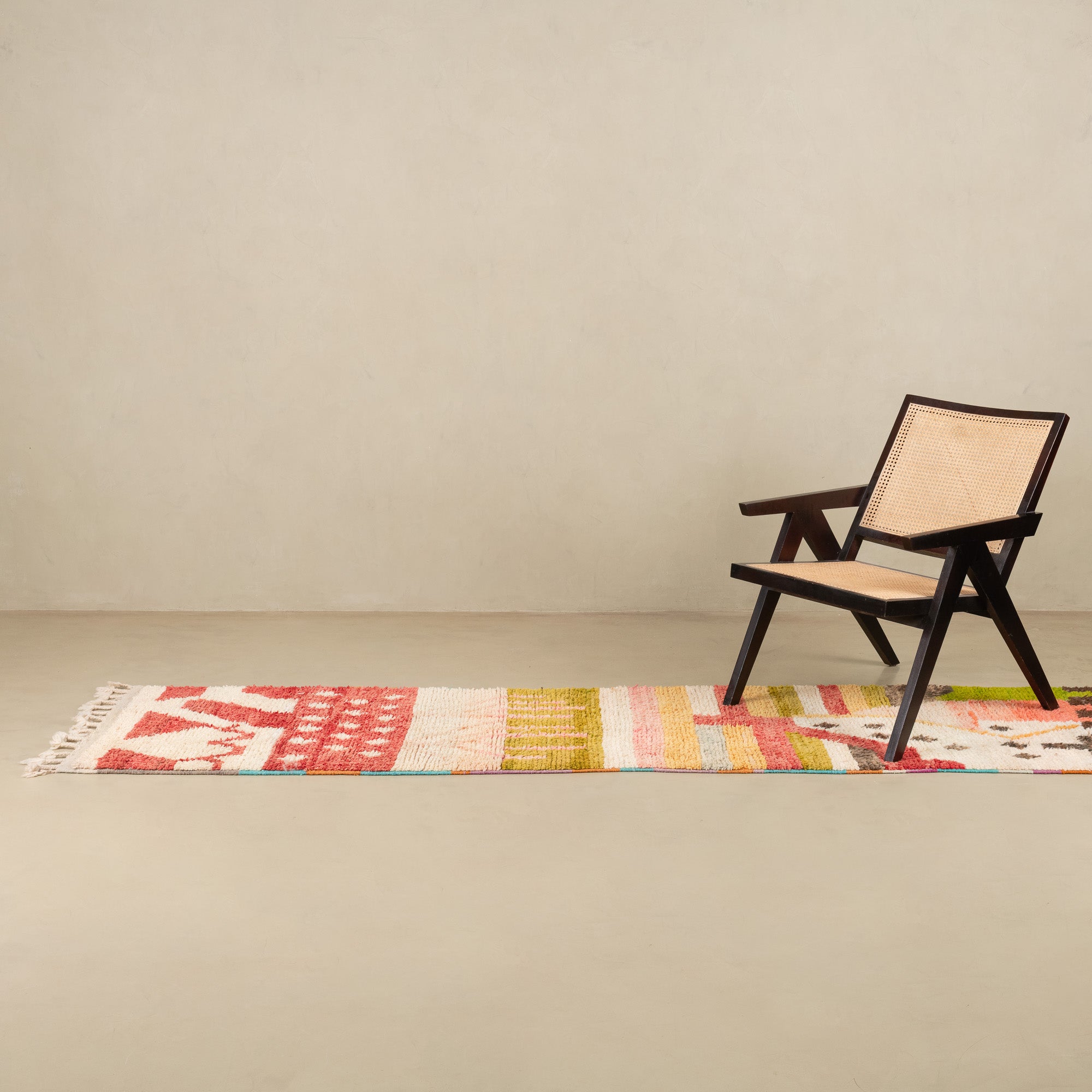 Boujad-Teppiche entstehen aus einem jahrhundertealten Wissen, das von den Frauen des Boujad-Stammes über Generationen weitergegeben wurde. Ihre farbenfrohen Muster sind von der Natur und den traditionellen Vorstellungen der Weberinnen inspiriert.