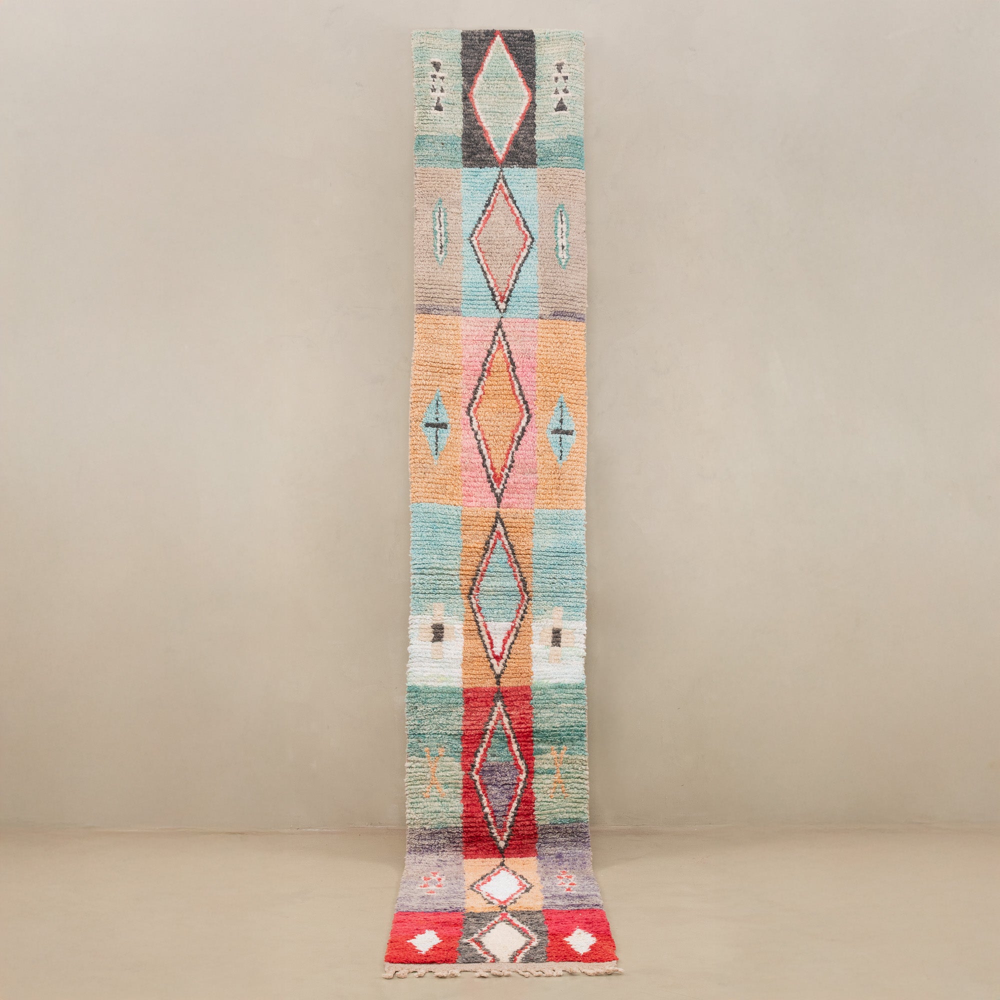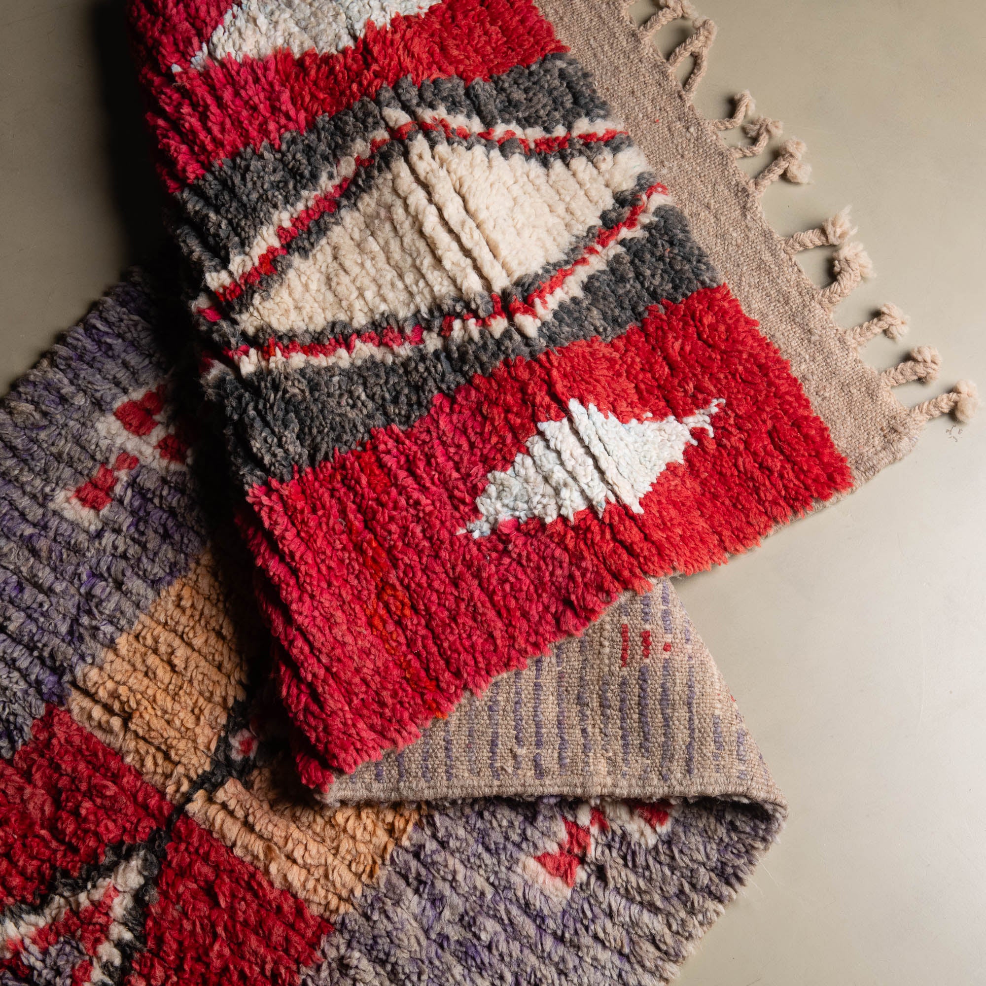 Boujad-Teppiche entstehen aus einem jahrhundertealten Wissen, das von den Frauen des Boujad-Stammes über Generationen weitergegeben wurde. Ihre farbenfrohen Muster sind von der Natur und den traditionellen Vorstellungen der Weberinnen inspiriert.