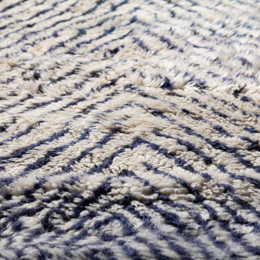 Betreten Sie diesen marokkanischen Teppich, gefertigt aus einer geheimen Mischung aus neuseeländischer und marokkanischer Wolle, die über Generationen verfeinert wurde. Die außergewöhnlich weichen Fasern umschmeicheln Ihre Füße und schenken Ihnen ein sinnliches Erlebnis, das nur echte Handwerkskunst hervorbringen kann.