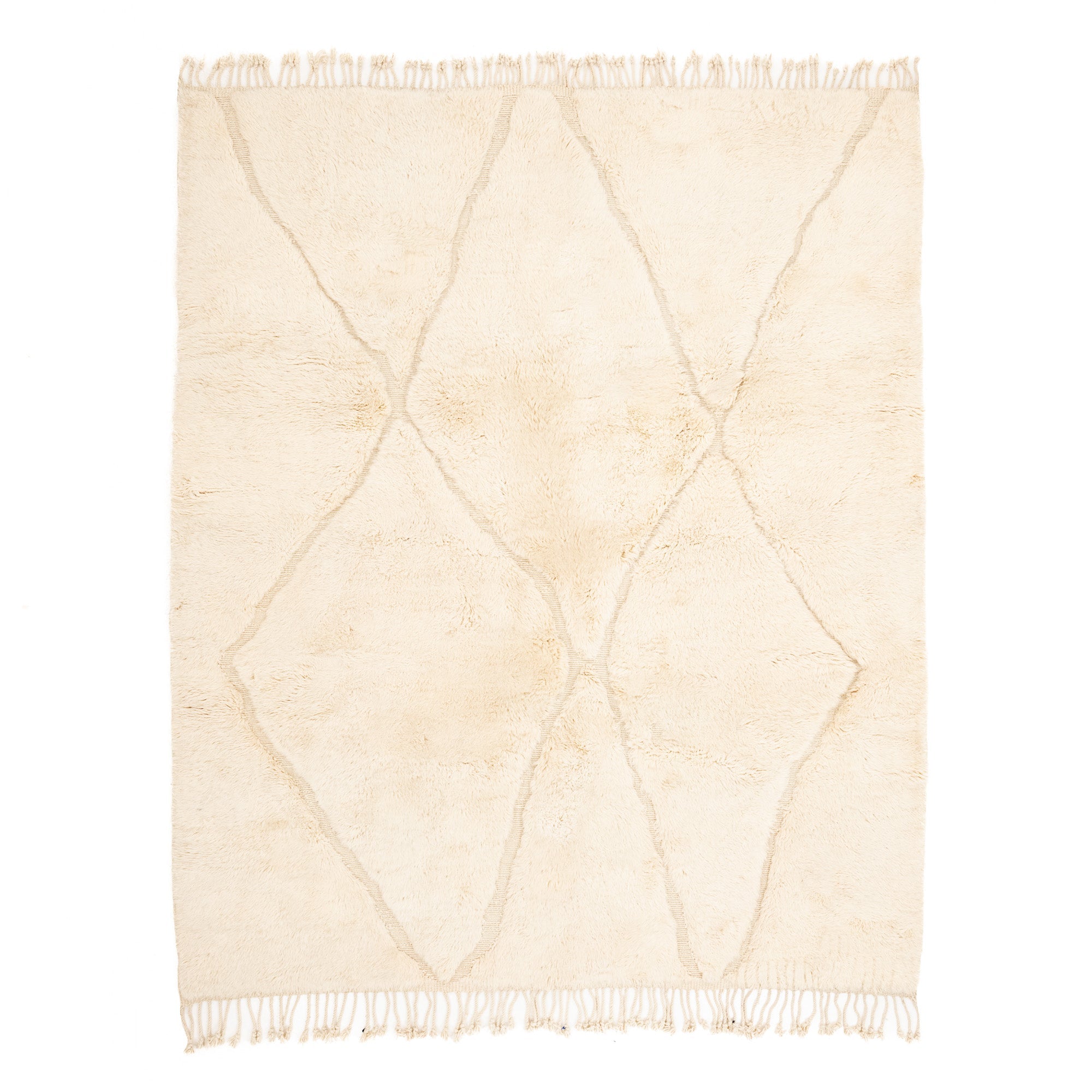Dieser Teppich wurde von den talentiertesten Kunsthandwerkerinnen der Region Beni Mrirt von Hand gewebt. Sie bewahren das traditionelle Wissen ihres Stammes mit großer Sorgfalt und geben es seit Generationen weiter. Diese uralte Webtechnik, kombiniert mit hochwertiger, aus Australien importierter Wolle, ermöglicht die Herstellung von Teppichen, die zugleich kunstvoll und edel sind. Das Ergebnis ist ein einzigartiges Stück voller kultureller Tiefe, außergewöhnlicher Weichheit und zeitloser Schönheit.