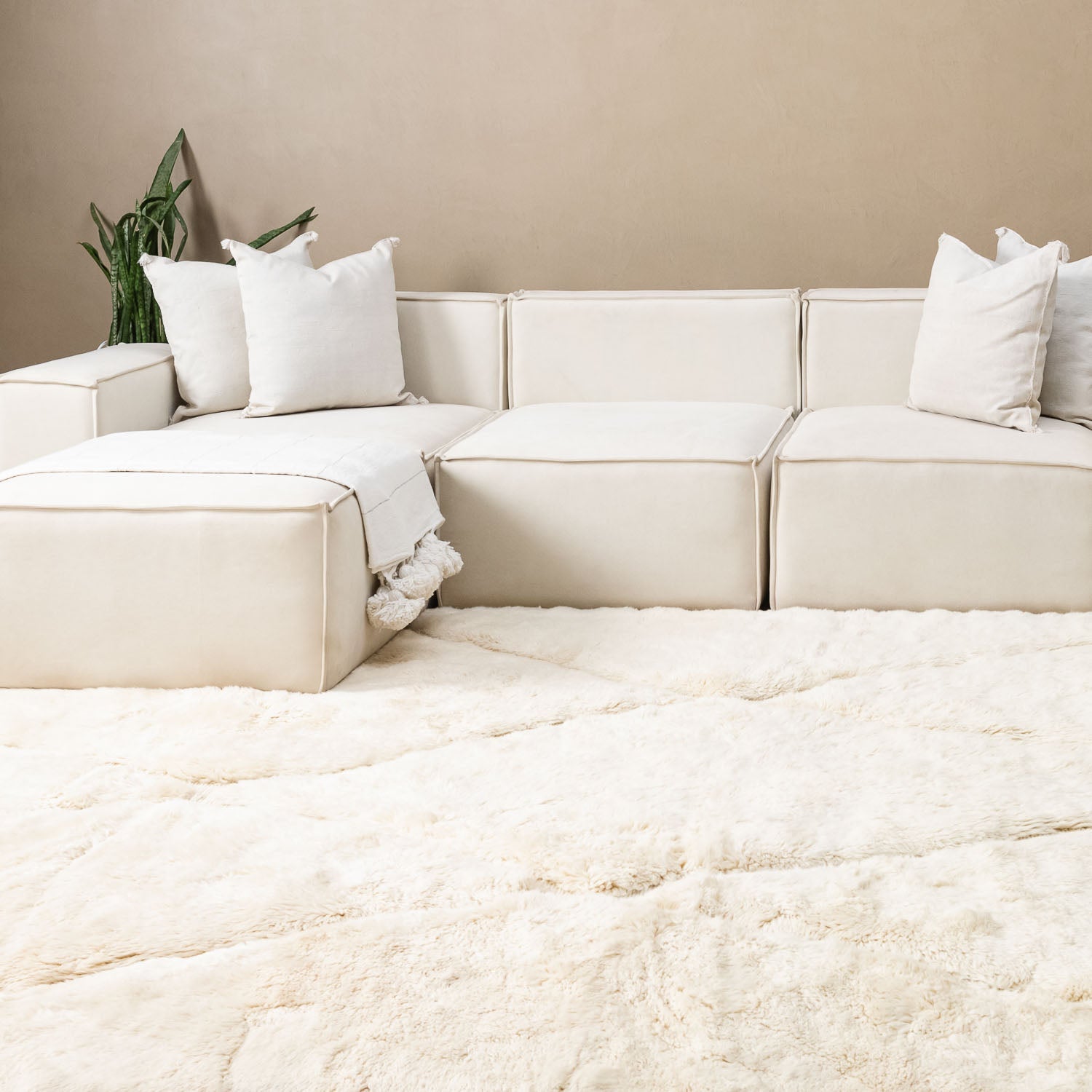 Betreten Sie diesen marokkanischen Teppich, gefertigt aus einer geheimen Mischung aus neuseeländischer und marokkanischer Wolle, die über Generationen verfeinert wurde. Die außergewöhnlich weichen Fasern umschmeicheln Ihre Füße und schenken Ihnen ein sinnliches Erlebnis, das nur echte Handwerkskunst hervorbringen kann.