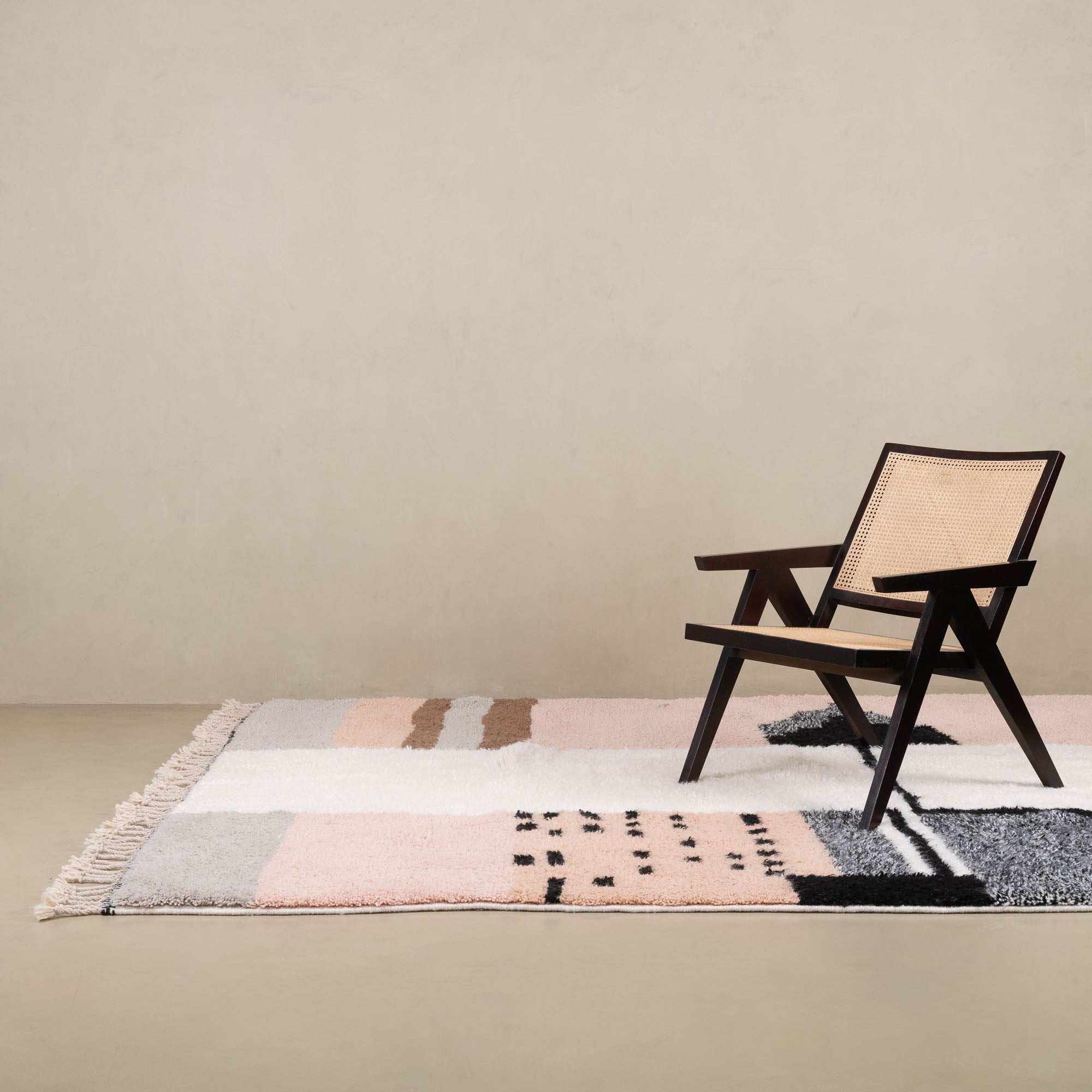 Der Markt ist heute übersät mit Teppichen, die fälschlicherweise als „marokkanisch“ vermarktet werden und in Ländern wie Indien, China oder der Türkei in Massenproduktion entstehen. Diese Stücke besitzen weder das kulturelle Erbe noch die handwerkliche Qualität und künstlerische Tiefe echter marokkanischer Teppiche.Unsere Lösung: