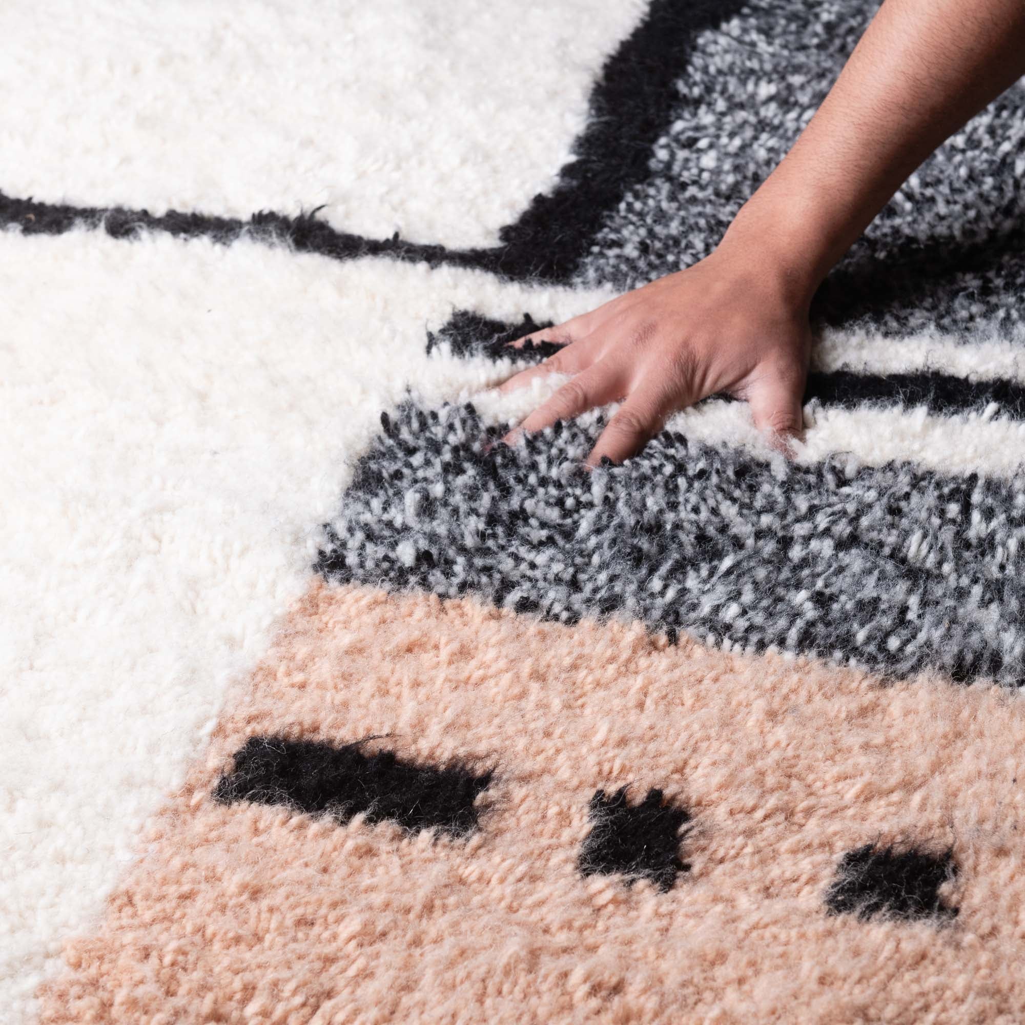 Billigläden, Instagram-Verkäufer und Plattformen wie Etsy bieten oft „authentische marokkanische Teppiche“ zu sehr niedrigen Preisen an. Einige dieser Teppiche mögen zwar in Marokko gewebt sein, aber sie sind mit minderwertige Wolle die von lokalen Märkten bezogen werden.Unsere Lösung: