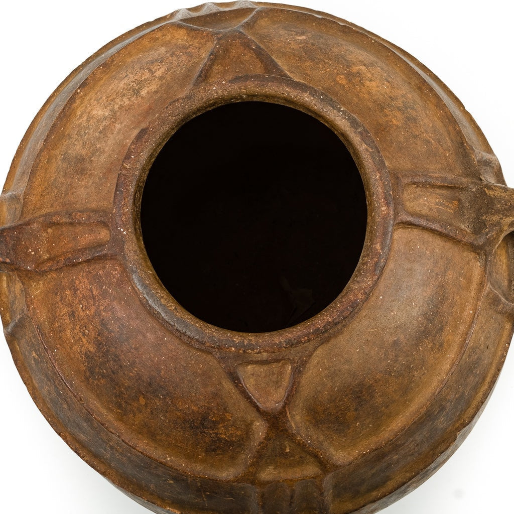 Antike Vase aus strukturierter Terrakotta. Kann mit Wasser befüllt werden. Für den Innen- und Außenbereich geeignet.