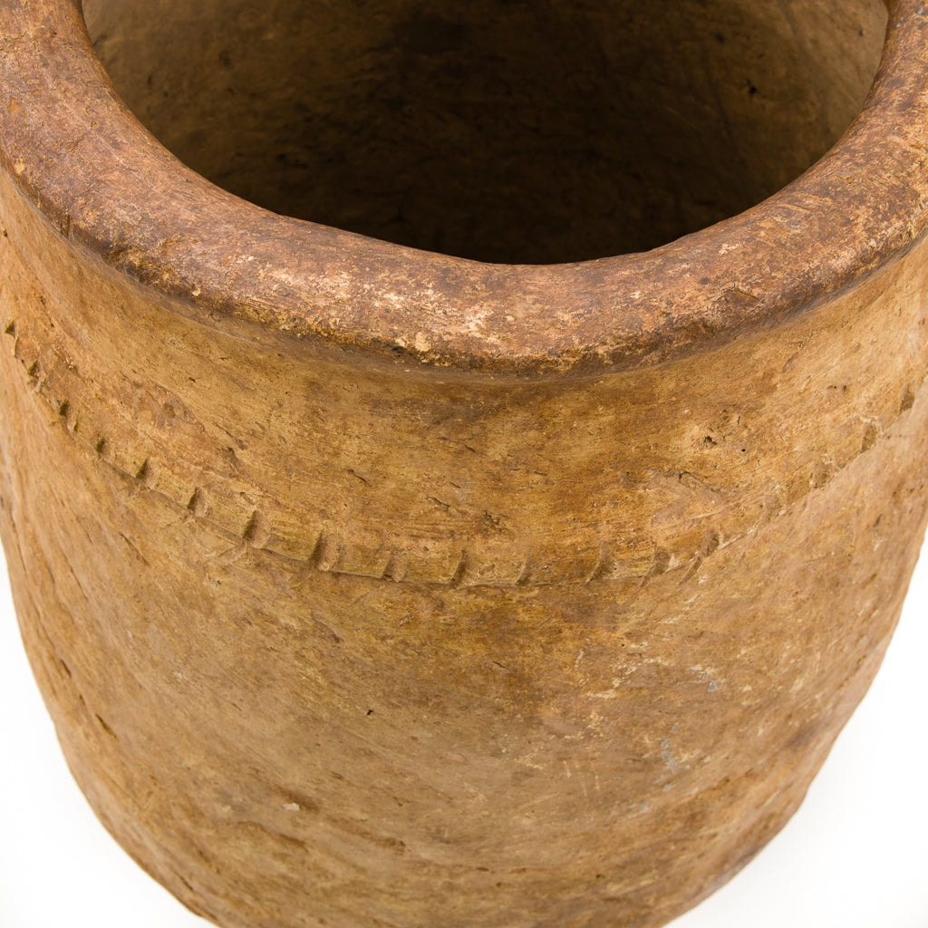 Antike Vase aus strukturierter Terrakotta. Kann mit Wasser befüllt werden. Für den Innen- und Außenbereich geeignet.