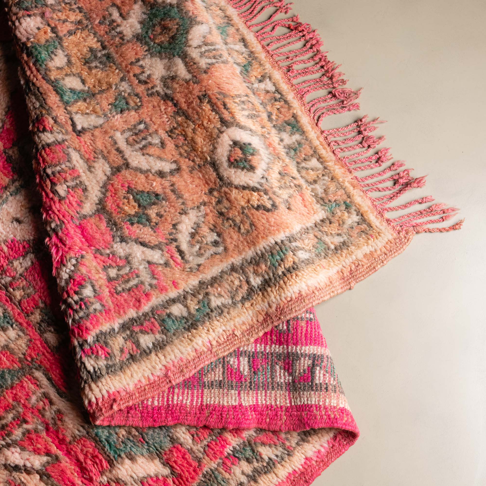Boujad-Teppiche entstehen aus einem jahrhundertealten Wissen, das von den Frauen des Boujad-Stammes über Generationen weitergegeben wurde. Ihre farbenfrohen Muster sind von der Natur und den traditionellen Vorstellungen der Weberinnen inspiriert.