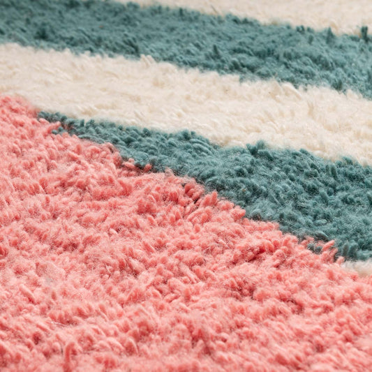 Benisouk garantiert, dass jeder Teppich 100 % handgefertigt in Marokko von erfahrenen Kunsthandwerkern gefertigt. Jedes Stück ist ein echtes Kunstwerk, das mit traditionellen Techniken hergestellt wird, die seit Generationen weitergegeben werden.Die Herausforderung: