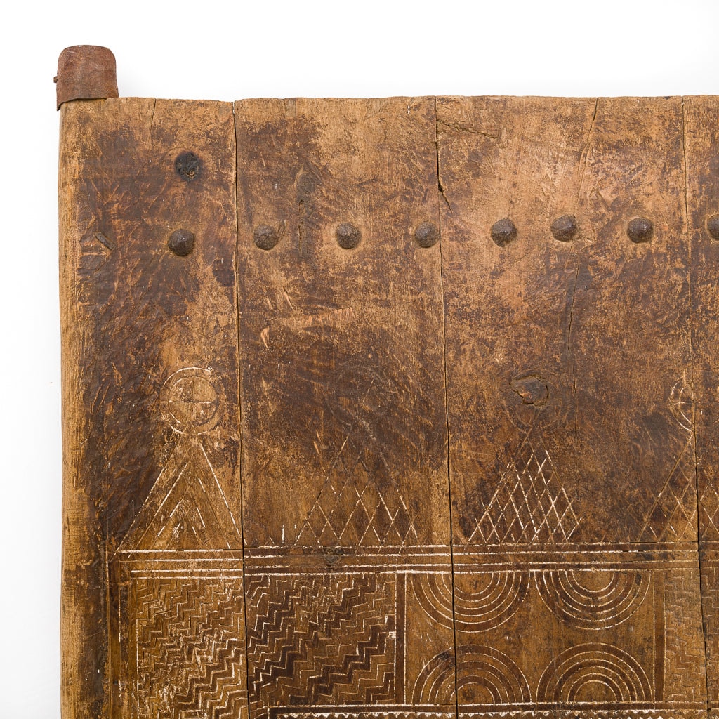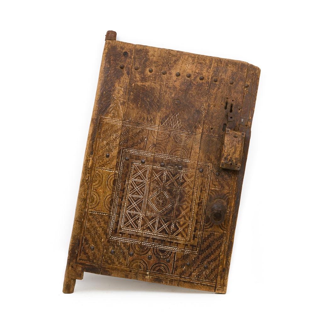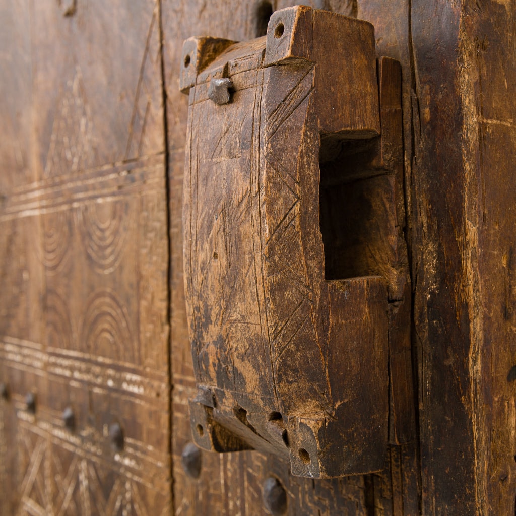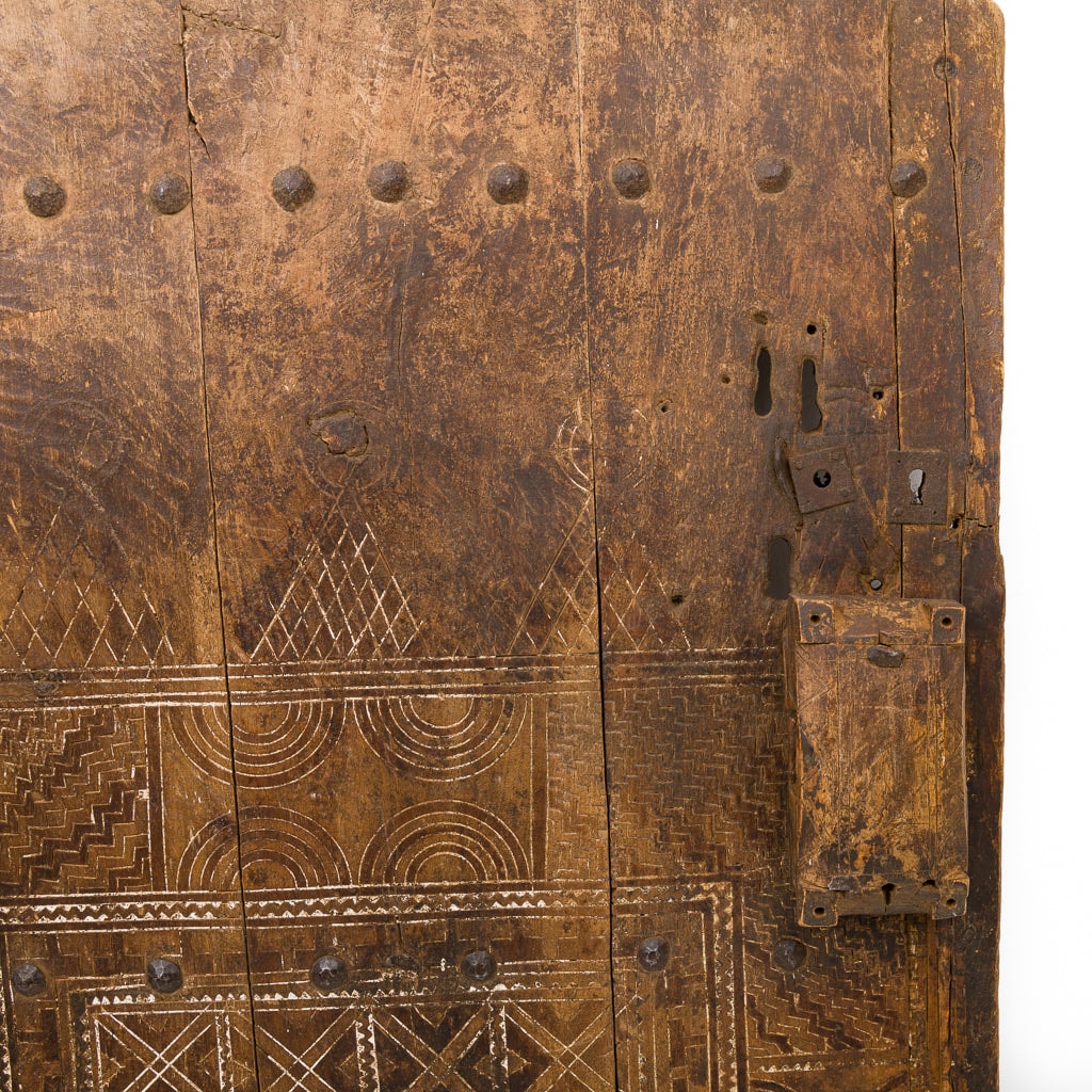 Diese antike marokkanische Holztür ist handgeschnitzt und handbemalt.