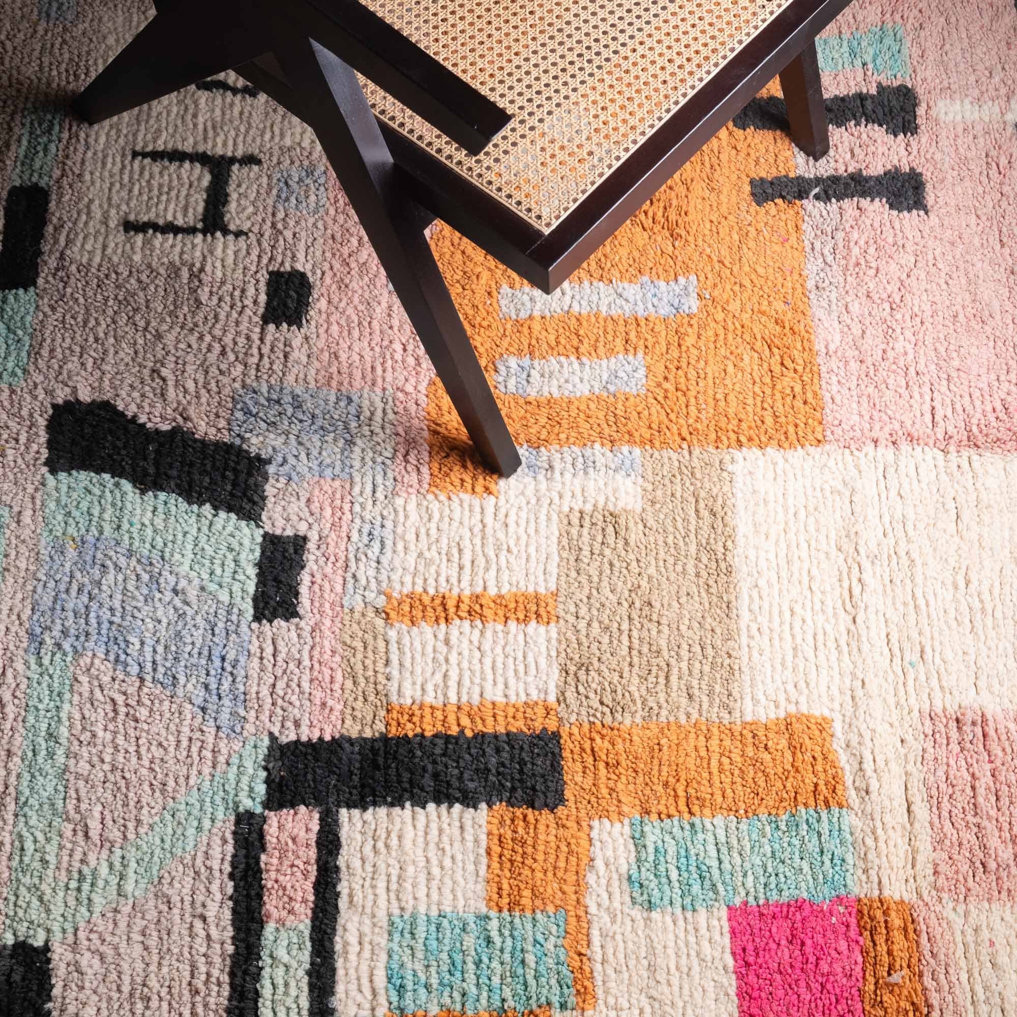 Boujad-Teppiche entstehen aus einem jahrhundertealten Wissen, das von den Frauen des Boujad-Stammes über Generationen weitergegeben wurde. Ihre farbenfrohen Muster sind von der Natur und den traditionellen Vorstellungen der Weberinnen inspiriert.