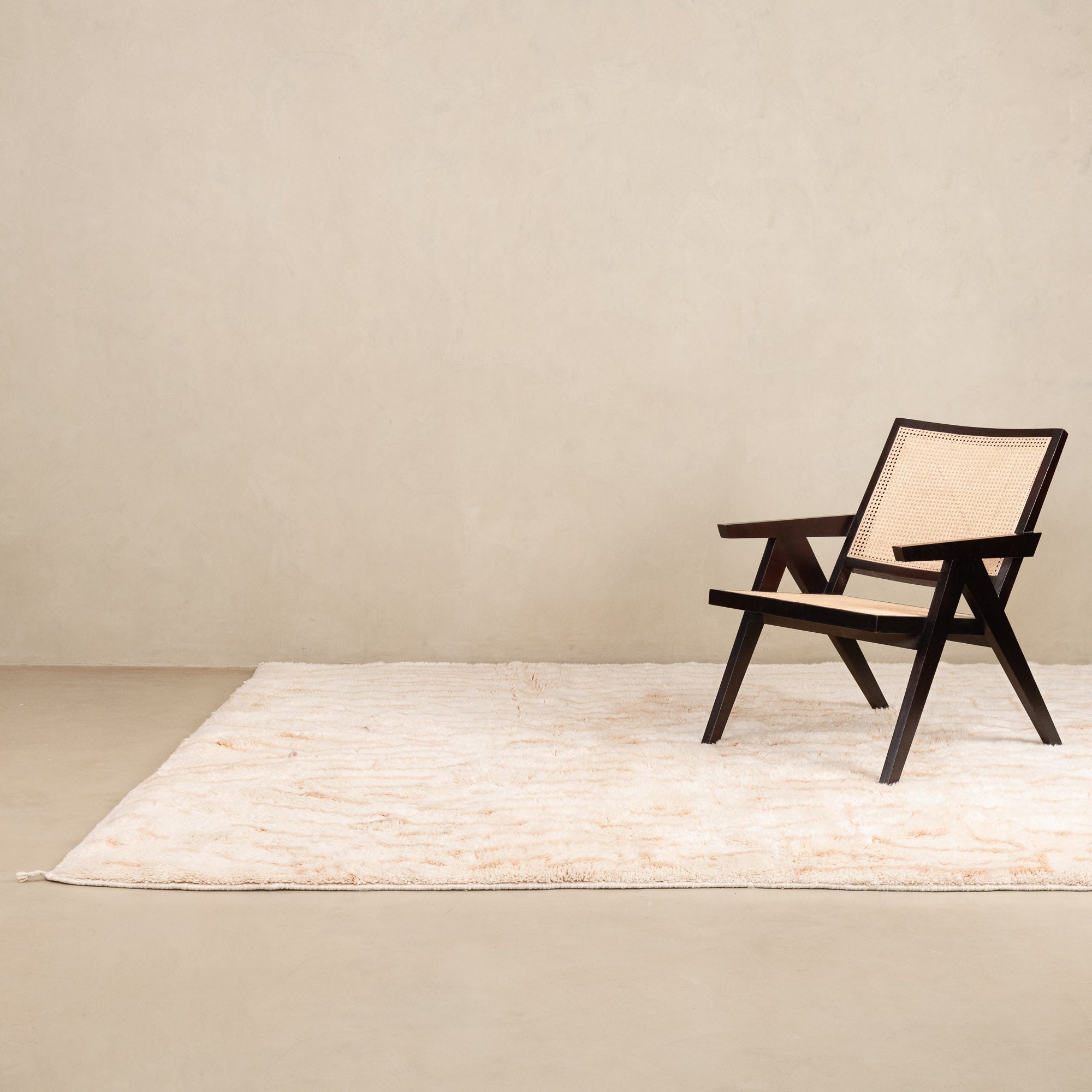 Betreten Sie diesen marokkanischen Teppich, gefertigt aus einer geheimen Mischung aus neuseeländischer und marokkanischer Wolle, die über Generationen verfeinert wurde. Die außergewöhnlich weichen Fasern umschmeicheln Ihre Füße und schenken Ihnen ein sinnliches Erlebnis, das nur echte Handwerkskunst hervorbringen kann.