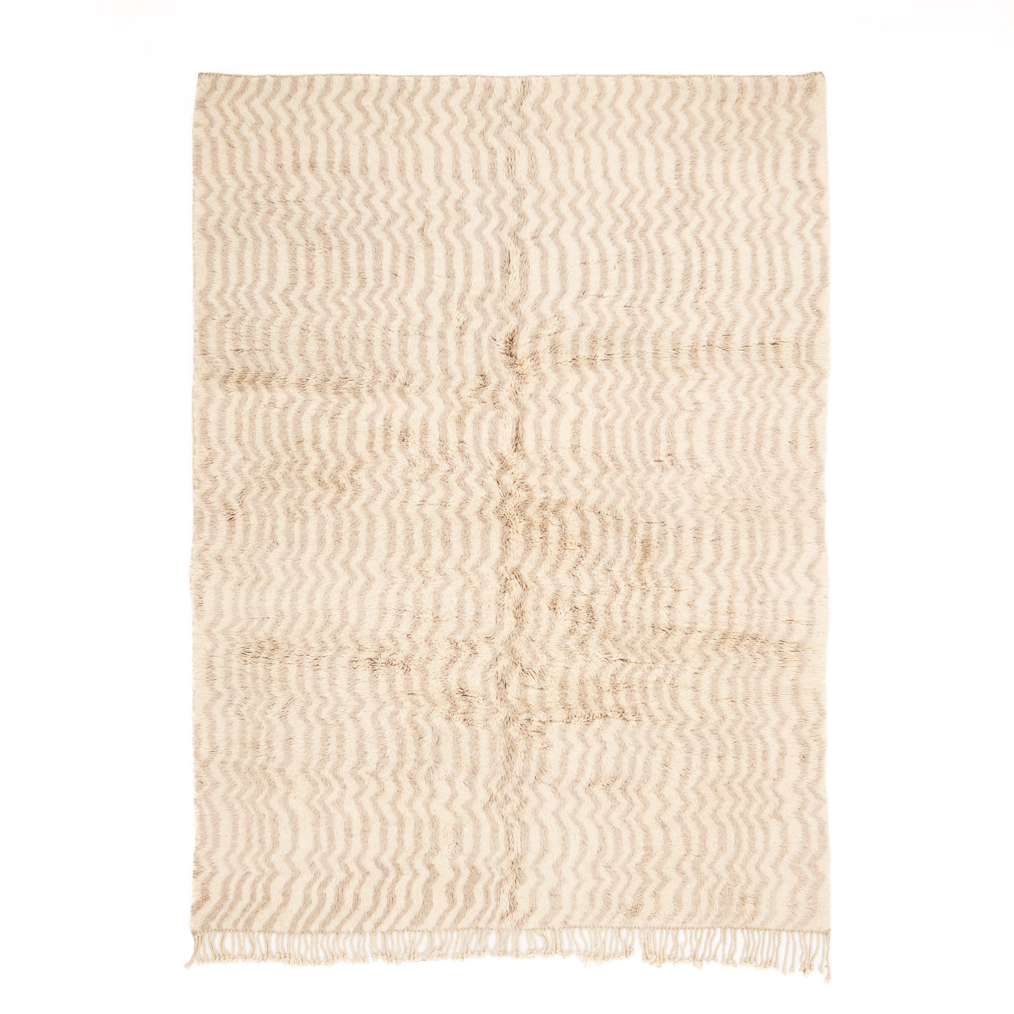 Betreten Sie diesen marokkanischen Teppich, gefertigt aus einer geheimen Mischung aus neuseeländischer und marokkanischer Wolle, die über Generationen verfeinert wurde. Die außergewöhnlich weichen Fasern umschmeicheln Ihre Füße und schenken Ihnen ein sinnliches Erlebnis, das nur echte Handwerkskunst hervorbringen kann.