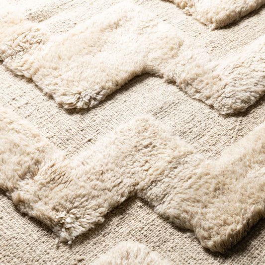 Betreten Sie diesen marokkanischen Teppich, gefertigt aus einer geheimen Mischung aus neuseeländischer und marokkanischer Wolle, die über Generationen verfeinert wurde. Die außergewöhnlich weichen Fasern umschmeicheln Ihre Füße und schenken Ihnen ein sinnliches Erlebnis, das nur echte Handwerkskunst hervorbringen kann.