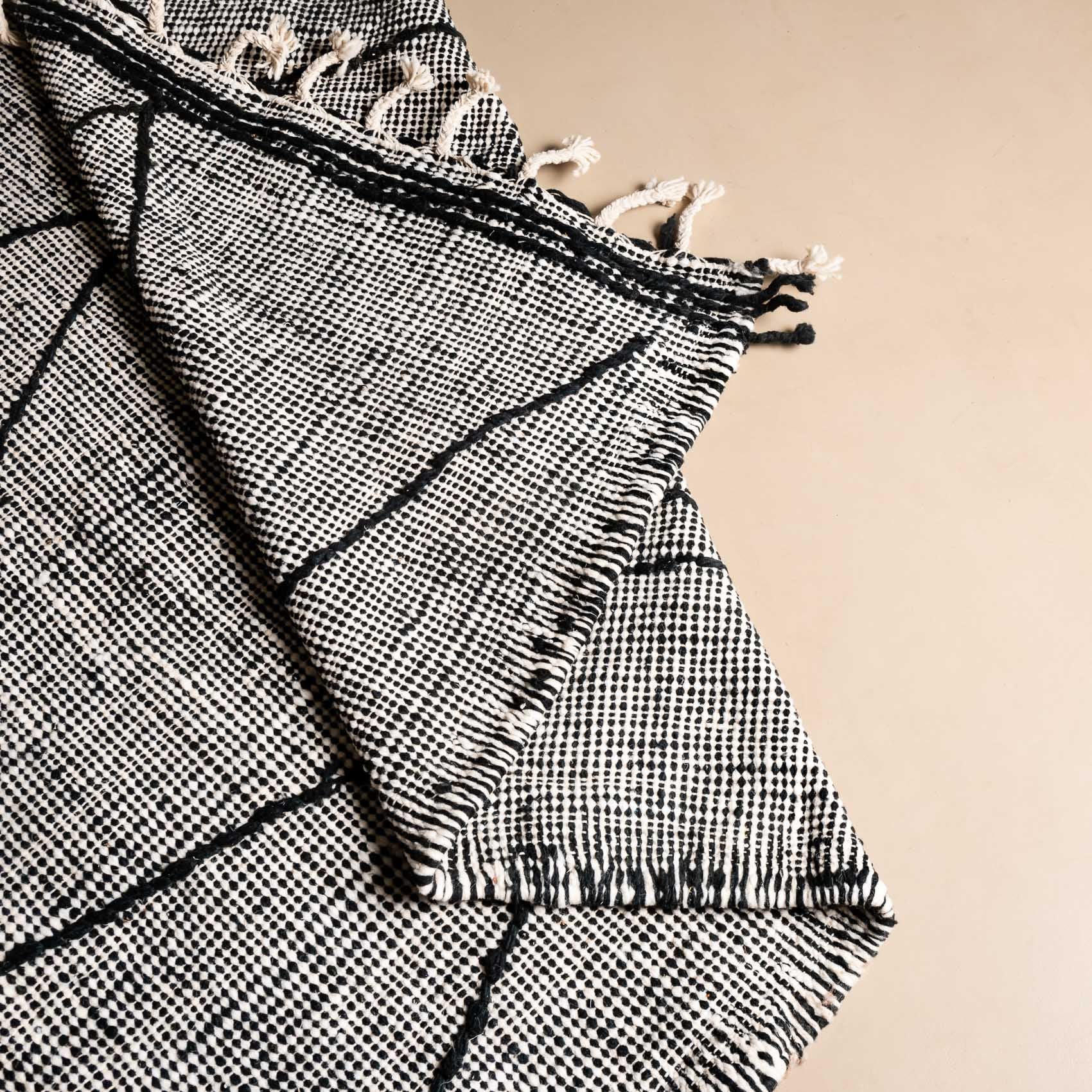 Benisouk garantiert, dass jeder Teppich 100 % handgefertigt in Marokko von erfahrenen Kunsthandwerkern gefertigt. Jedes Stück ist ein echtes Kunstwerk, das mit traditionellen Techniken hergestellt wird, die seit Generationen weitergegeben werden.Die Herausforderung: