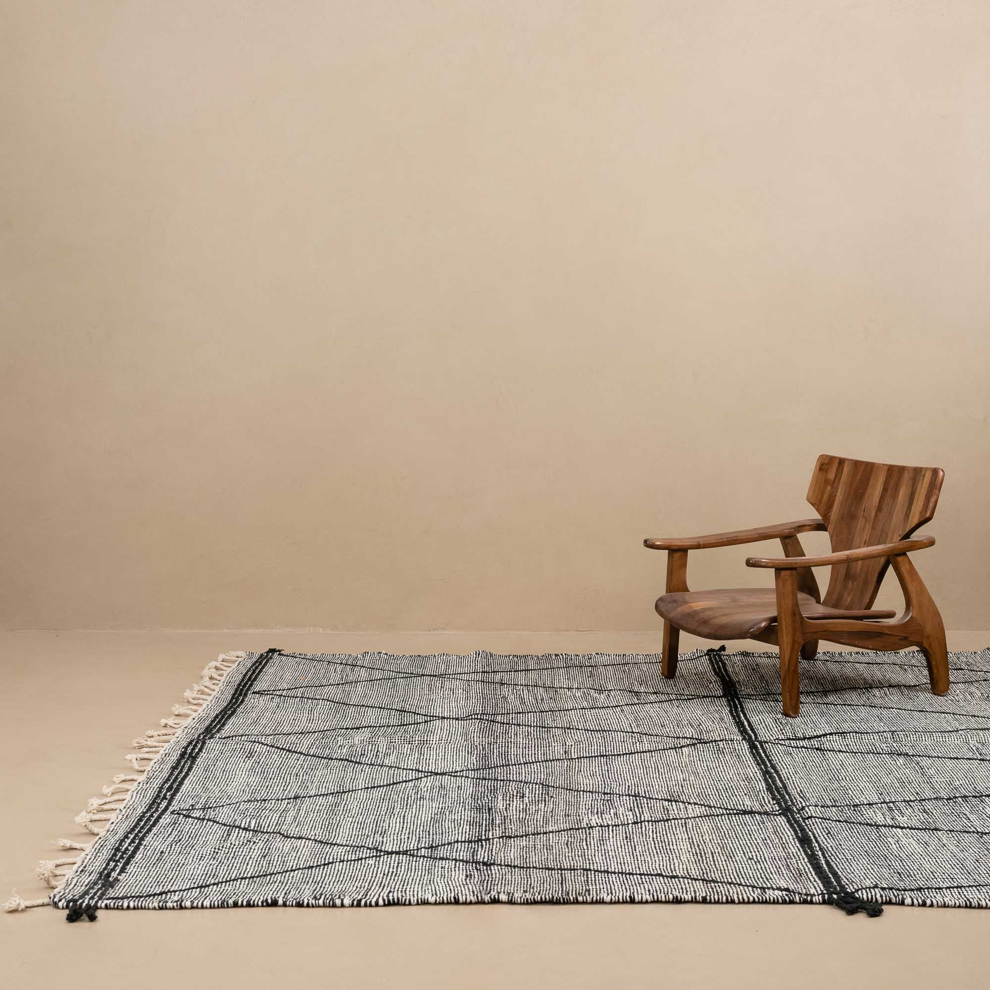 Der Markt ist heute übersät mit Teppichen, die fälschlicherweise als „marokkanisch“ vermarktet werden und in Ländern wie Indien, China oder der Türkei in Massenproduktion entstehen. Diese Stücke besitzen weder das kulturelle Erbe noch die handwerkliche Qualität und künstlerische Tiefe echter marokkanischer Teppiche.Unsere Lösung: