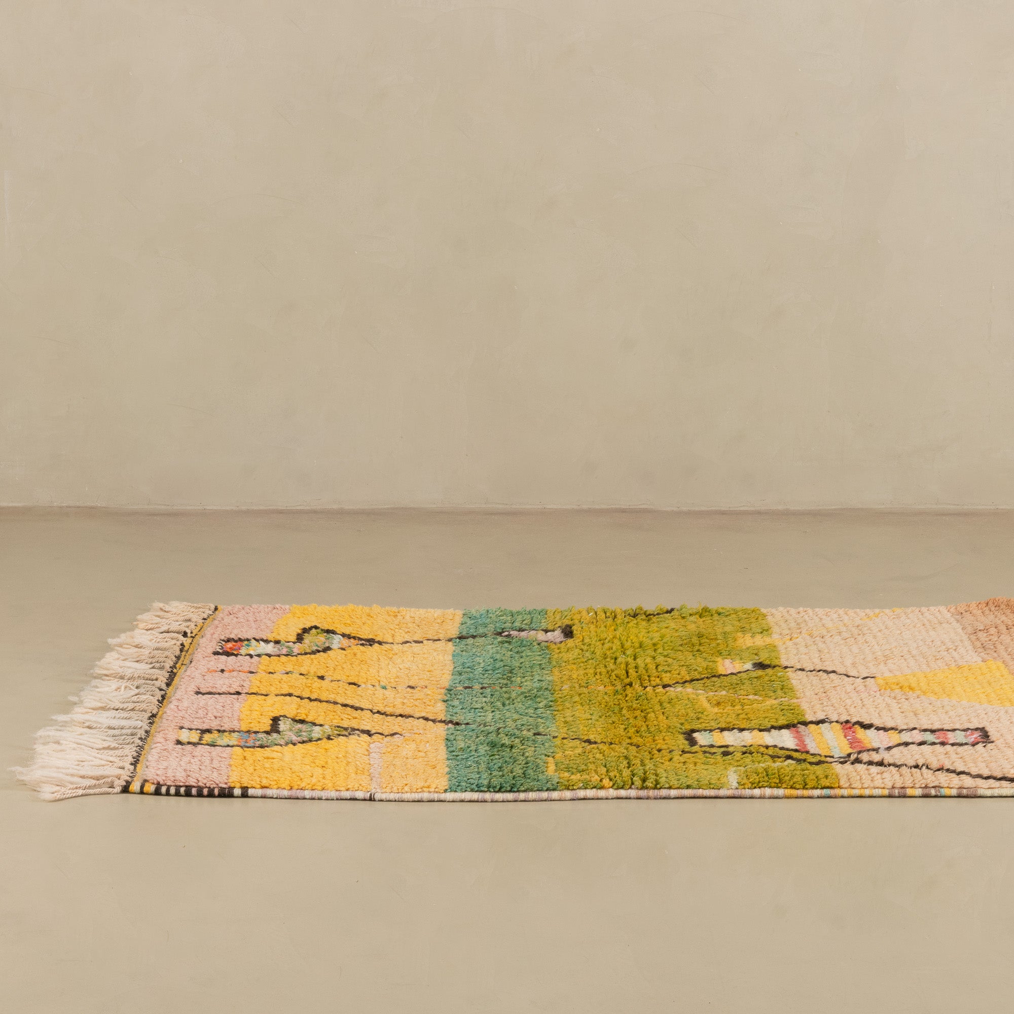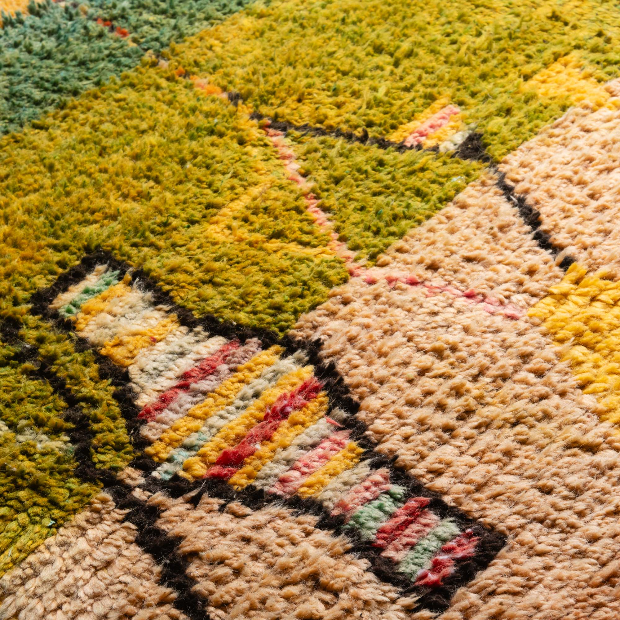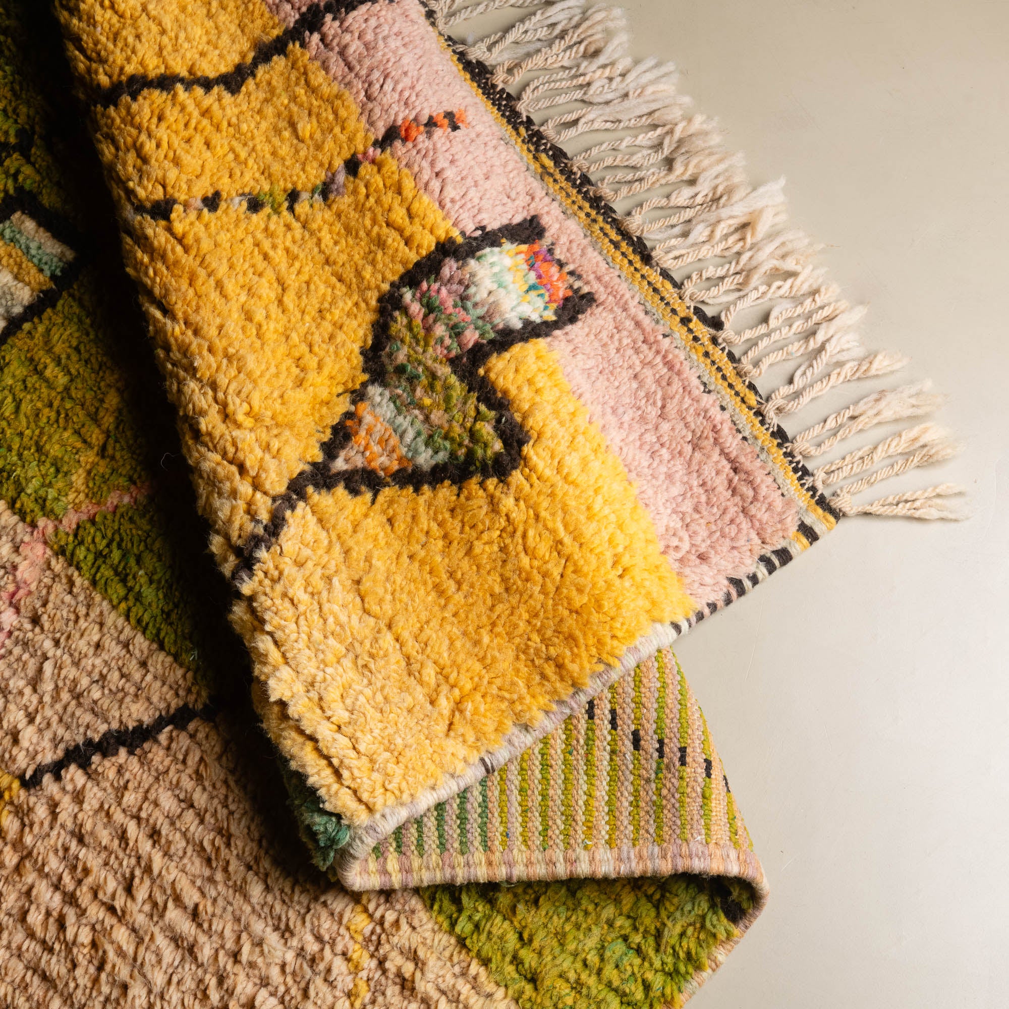 Boujad-Teppiche entstehen aus einem jahrhundertealten Wissen, das von den Frauen des Boujad-Stammes über Generationen weitergegeben wurde. Ihre farbenfrohen Muster sind von der Natur und den traditionellen Vorstellungen der Weberinnen inspiriert.