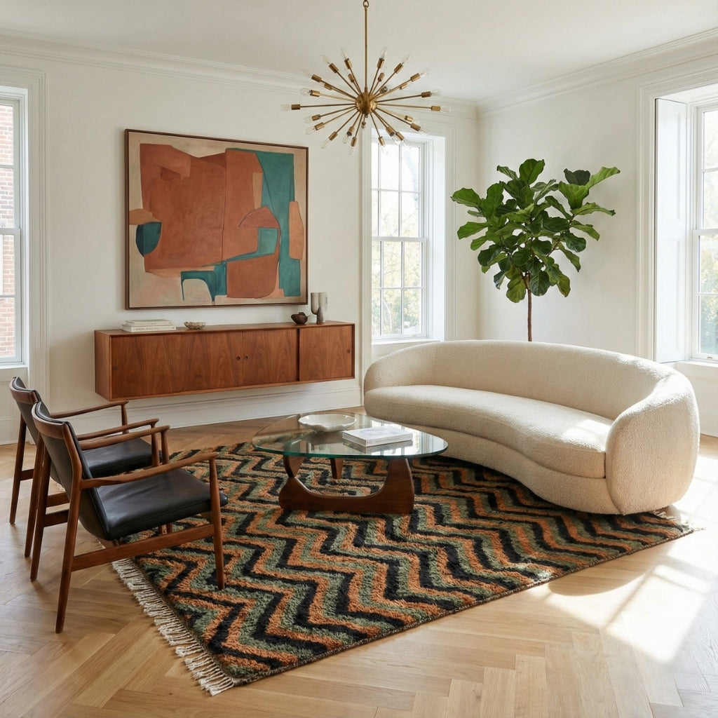 Der Markt ist heute übersät mit Teppichen, die fälschlicherweise als „marokkanisch“ vermarktet werden und in Ländern wie Indien, China oder der Türkei in Massenproduktion entstehen. Diese Stücke besitzen weder das kulturelle Erbe noch die handwerkliche Qualität und künstlerische Tiefe echter marokkanischer Teppiche.Unsere Lösung: