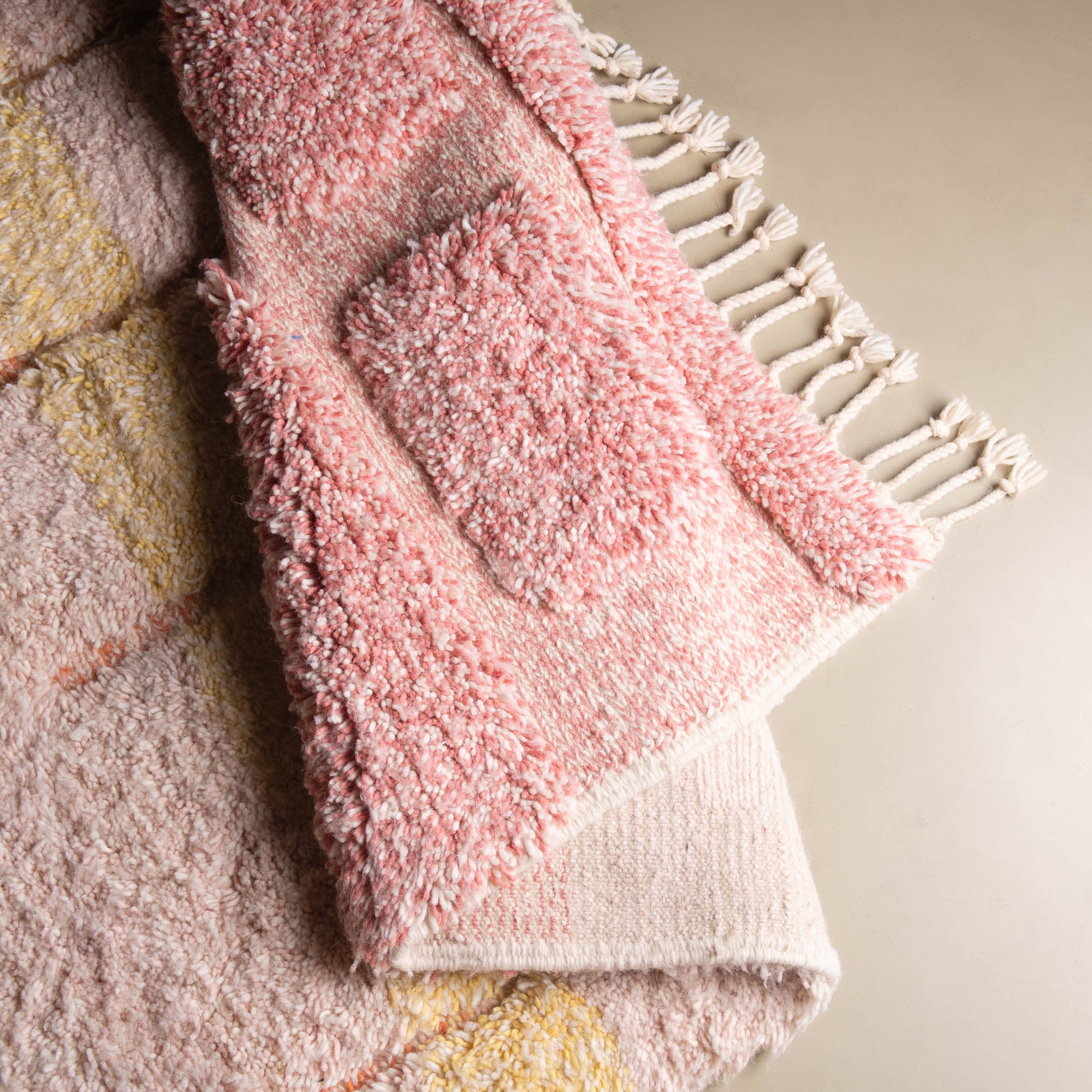 Billigläden, Instagram-Verkäufer und Plattformen wie Etsy bieten oft „authentische marokkanische Teppiche“ zu sehr niedrigen Preisen an. Einige dieser Teppiche mögen zwar in Marokko gewebt sein, aber sie sind mit minderwertige Wolle die von lokalen Märkten bezogen werden.Unsere Lösung:
