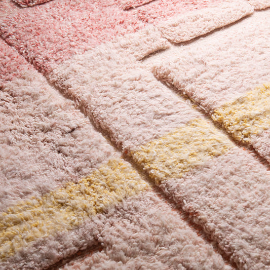 Benisouk garantiert, dass jeder Teppich 100 % handgefertigt in Marokko von erfahrenen Kunsthandwerkern gefertigt. Jedes Stück ist ein echtes Kunstwerk, das mit traditionellen Techniken hergestellt wird, die seit Generationen weitergegeben werden.Die Herausforderung: