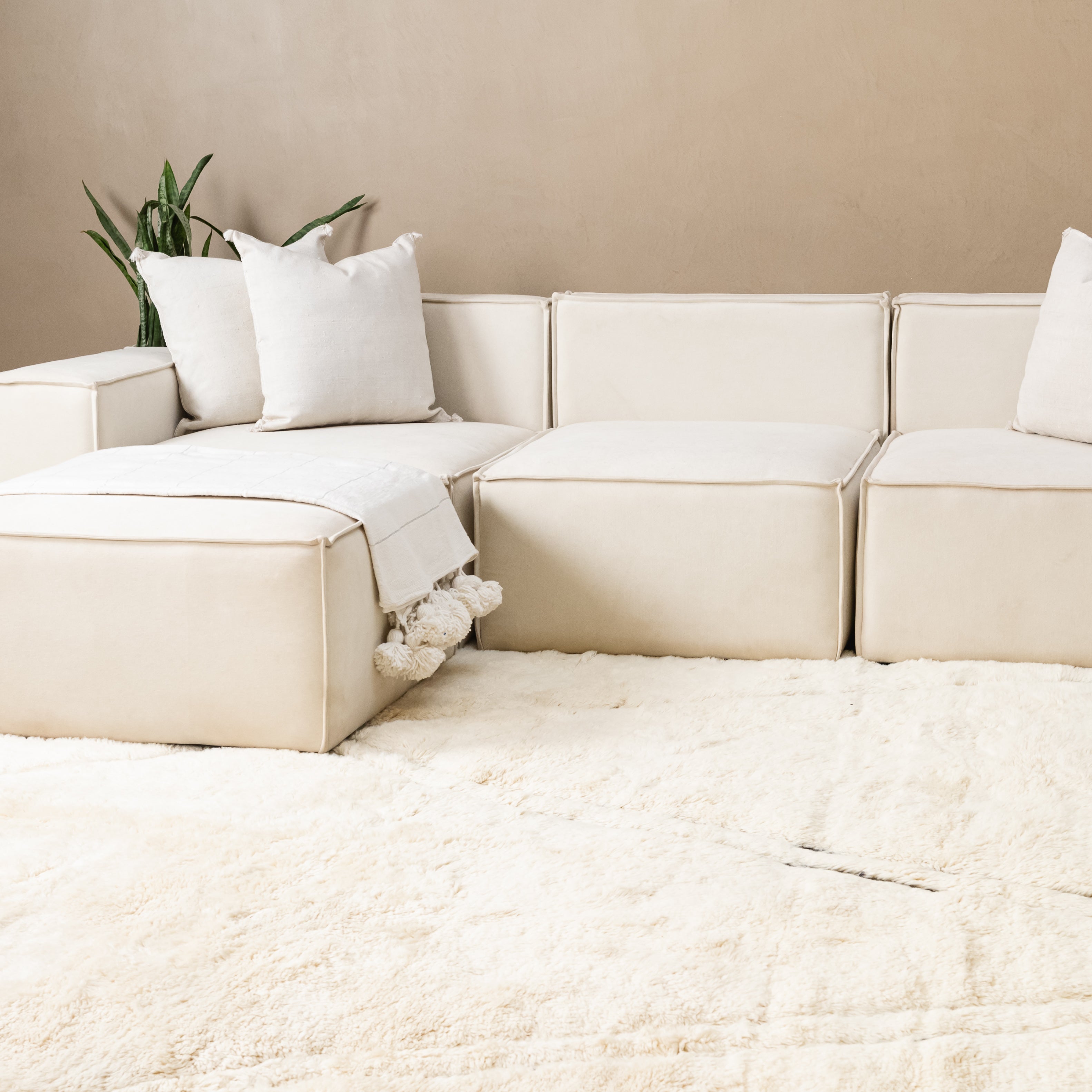 At Benisouk, we use only premium-grade wool from healthy, living sheep, ensuring our rugs are: