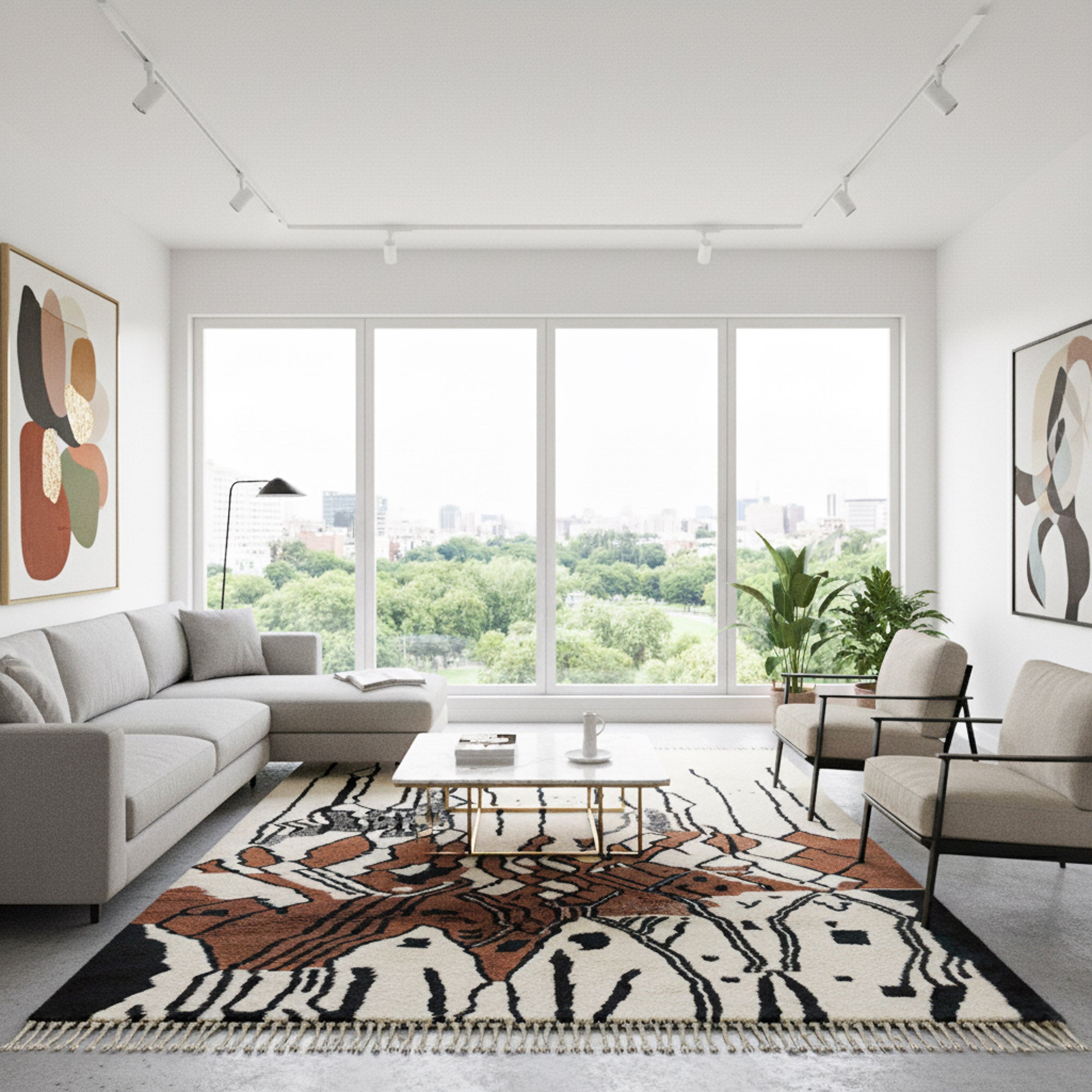 • Empowering over 1,000 skilled craftswomen, each rug supports authentic Moroccan craftsmanship and sustainable livelihoods.