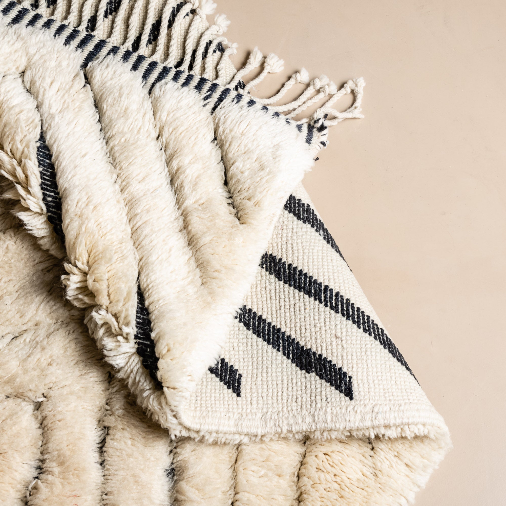 At Benisouk, we use only premium-grade wool from healthy, living sheep, ensuring our rugs are: