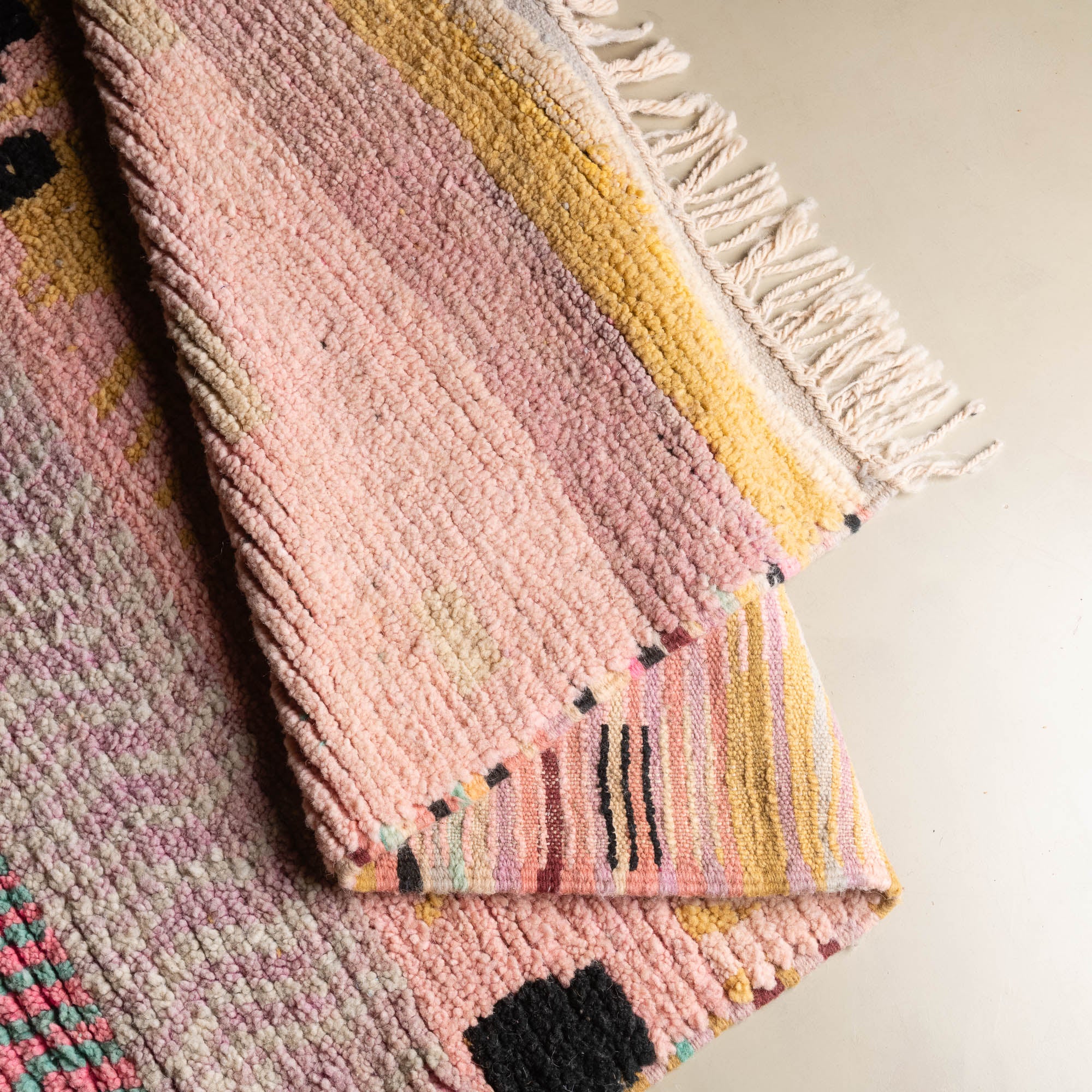 Boujad rugs are the result of a thousand-year-old know-how, transmitted from generation to generation by the women of the Boujad tribe. The colorful patterns of these rugs are inspired by nature and their beliefs.